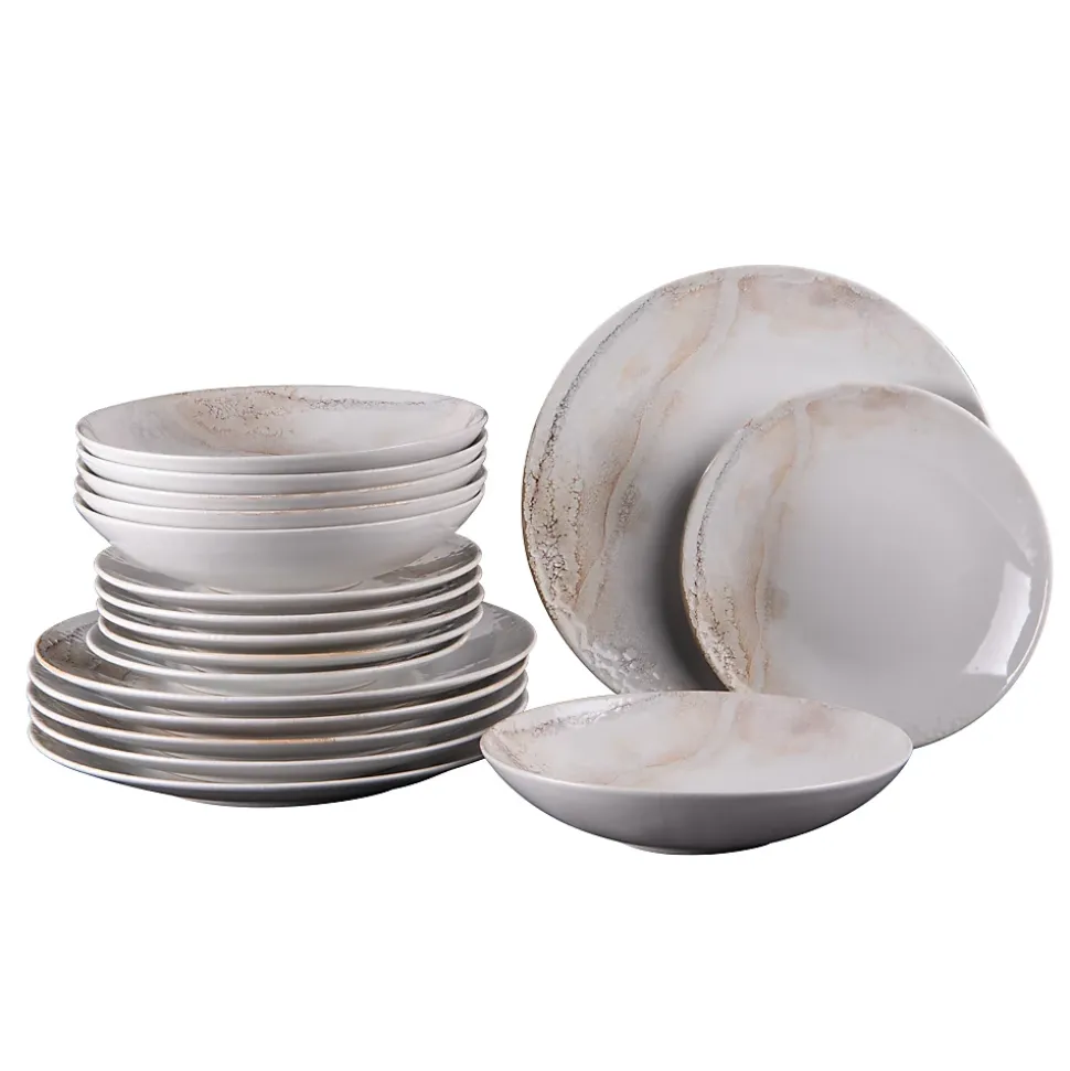 Ces assiettes Mojave en grès sont décorées sur une partie et représentent des couleurs chaudes déposées comme des petits grains de sable pour rappeler le désert.Ce service d’assiettes 18 pièces est composé de 6 assiettes plates, 6 assiettes creuses et 6 assiettes à dessert.Collection : Mojave Matière : Grès Couleur : Beige