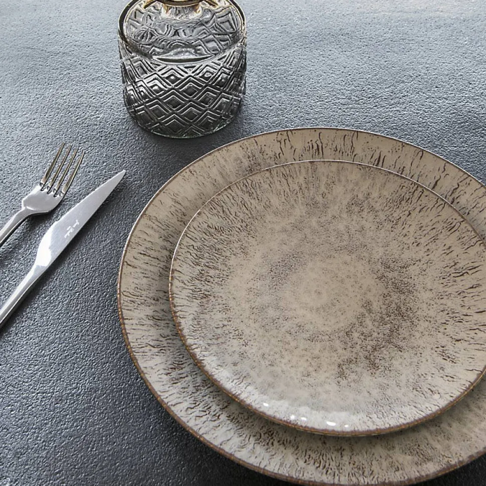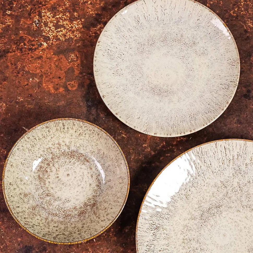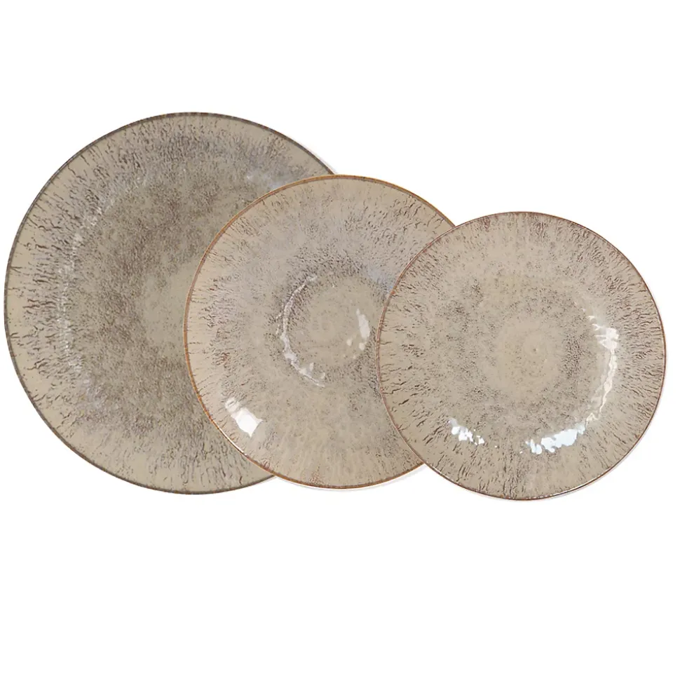 Ce service d’assiettes de la gamme Akaris sera votre meilleur allié à l’occasion de vos repas ! Elégantes et raffinées, elles s’adapteront parfaitement à votre décoration de table. Vous serez séduit par leur design unique, qui mettra en valeur toutes vos créations culinaires.Ce service est composé de :- 6 assiettes plates de 27 cm de diamètre- 6 assiettes creuses de 22 cm de diamètre- 6 assiettes à dessert de 21 cm de diamètreN’hésitez pas à compléter votre service avec les saladiers et les assiettes de présentation de la même gamme.Collection : Akaris Matière : Grès Couleur : Beige Hauteur : 3 cm Compatible Lave-vaisselle