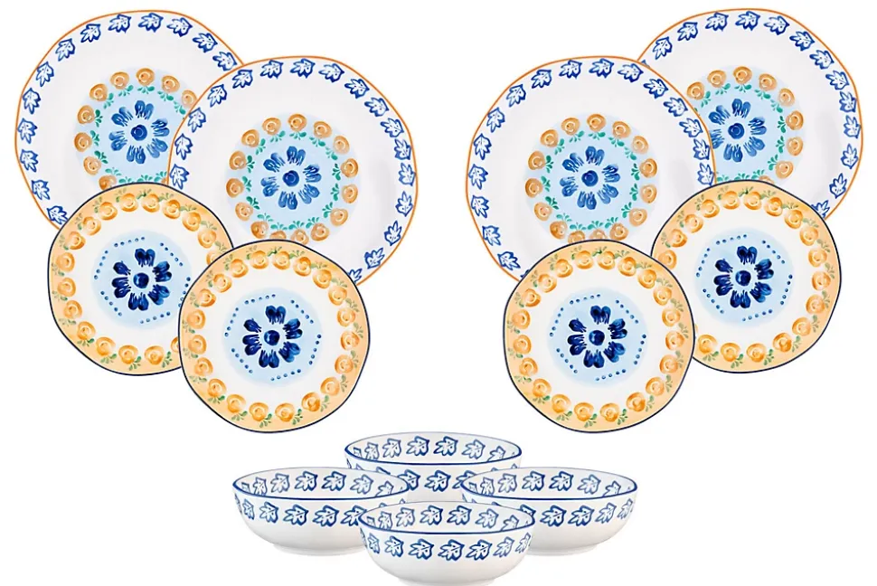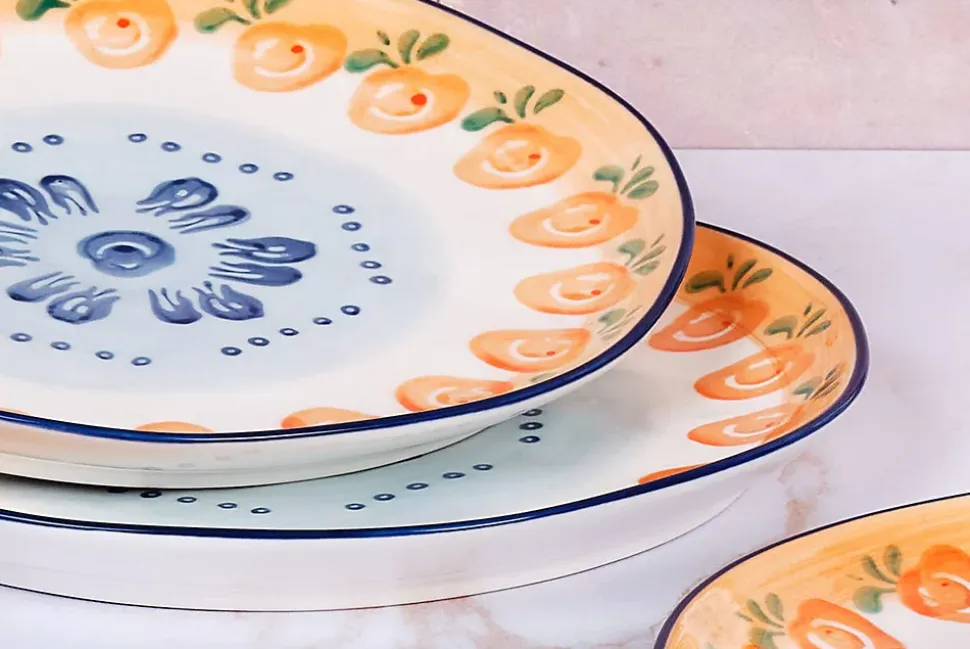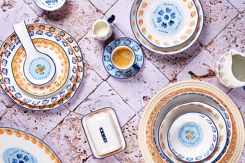 Le service Les Essentiels est constitué de 3 basiques pour 4 personnes, à savoir un bol de grande contenance, une grande et une petite assiette, soit tout le nécessaire à utiliser au quotidien pour vous accompagner dans tous les repas de la journée.Fabriqué en porcelaine blanche de haute qualité, chaque pièce est peinte à la main avec des motifs de feuillages, de fruits et d’agrumes par des artisans talentueux. Ces couleurs vives contrastent avec l’émail d’un blanc pur et rappellent l’artisanat et l’art de vivre italien.La collection NAPOLI s’inspire des vergers ensoleillés du sud de l’Italie. Elle nous invite au partage, entourés de famille et d’amis, avec des motifs joyeux et des couleurs lumineuses. Apportant une atmosphère chaleureuse et accueillante autour de la table, chaque pièce capture l’esprit de la dolce vita.