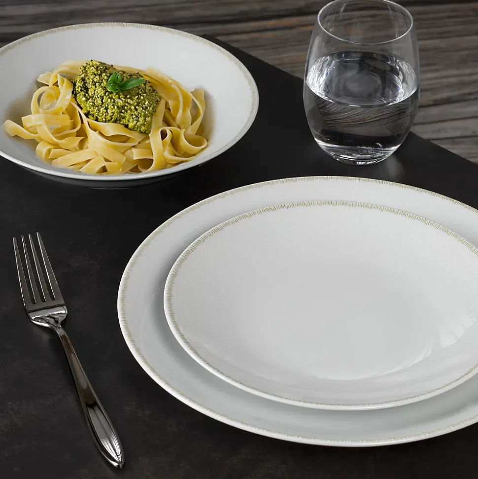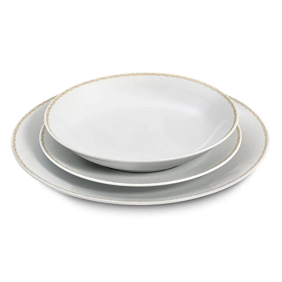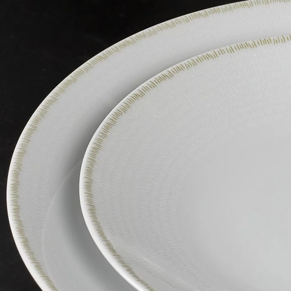Service 18 piéces pour 6 personnes de la collection Nuance par Médard de Noblat. Nuance est une collection de porcelaine blanche au décor doré et festif. Médard de Noblat réinvente le plaisir d’être à table. Nos collections en porcelaine et en grès ajoutent une touche de modernité et de sophistication à votre table. Laissez-vous séduire par notre univers créatif et raffiné. Dimensions Plate : 27cm ; Dessert : 21cm ; Creuse : 20cm