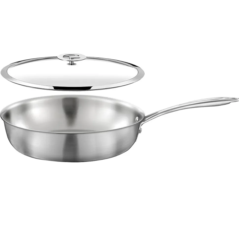 Set 1 sauteuse 24cm inox avec couvercle de la collection Gourmet par Cuisinox. Tout inox et sans revêtement, Gourmet est conçue pour une cuisson saine et professionnelle à hautes températures. Compatibles tous feux dont induction, ces corps Made in France sont dotés de 3 couches « tri-pli » pour une répartition uniforme de la chaleur. Cuisinox est une marque dédiée à la cuisson, créée par Jean Couzon en 1967. Elle offre un design unique et un bon rapport qualité / prix. Les gammes sont durables, conçues tous feux dans des matériaux nobles et avec des revêtements de qualité. Dimensions Ø 24 cm