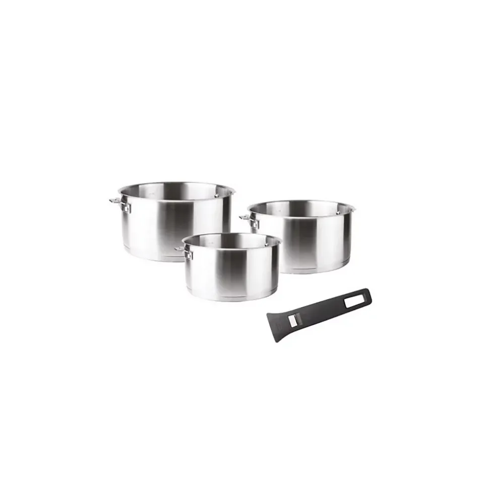 Set 3 casseroles inox 16 / 18 / 20 cm + poignée Lacor – Set de 3 casseroles + poignée Combi 56610 de Lacor. Découvrez la polyvalence de cette collection combi avec son système Click & Lock et économisez de l’espace ! Changez facilement les poignées et les anses pour adapter vos poêles et casseroles à vos besoins ! Cerise sur le gâteau, elles sont empilables ! En acier inoxydable 18/10 de haute qualité. Garantie maximale en termes de résistance, de durabilité et d’hygiène. Extérieur et intérieur finition satinée. Fond du thermodiffuseur sandwich (inox / alu / inox) pour une répartition rapide et uniforme de la chaleur. – Type de produit : Set 3 casseroles + poignée.Gamme : Combi.Capacité en litres : 1.5, 2, 3.Set 3 casseroles inox 16 / 18 / 20 cm + poignée Noire.Empilable.Matériaux : Acier inoxydable 18/10.Compatible four traditionnel : Oui (sans anses et sans poignées).Tous feux dont induction : Oui.Livré avec : 1 poignée amovible.Passe au lave-vaisselle.Extérieur et intérieur : En finition satinée.Couleur du poignée : Noir.Couleur : Inox.