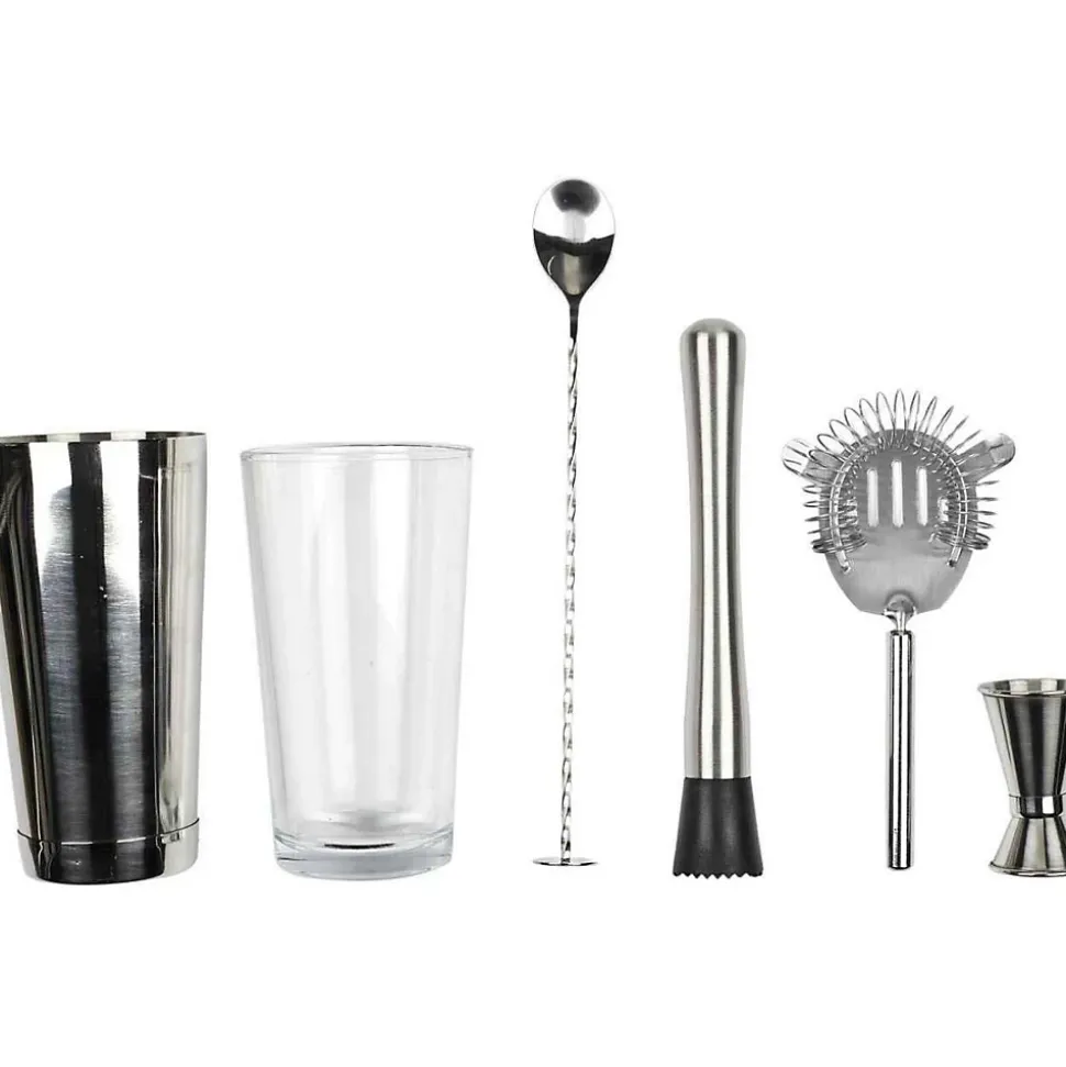 Aspect : Matériau principal = Acier Inoxydable • Matériaux secondaires = Verre Plastique (ABS) • Dimensions : Hauteur (en cm) = 32 • Longueur (en cm) = 9 • Profondeur (en cm) = 25 • Autres caractéristiques : Composition = 5 accessoires + fasic*le 50 recettes • Poids (en kg) = 1,03 • Set à cocktail 5 accesoires et 50 recettes