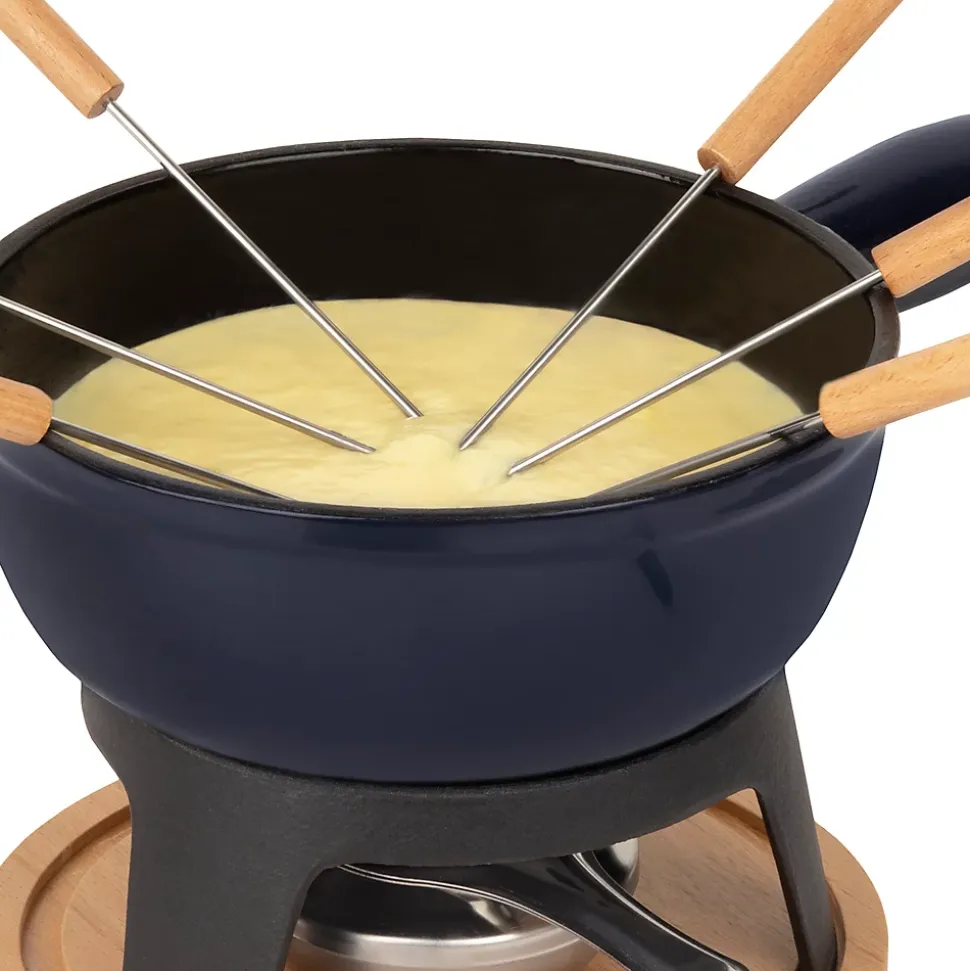 DESCRIPTION :Partager des moments conviviaux autour du service à fondue 6 personnes MONT JOUX.Cet appareil à fondue en fonte élégant possède un socle en bois naturel, sur lequel est positionné la boite à alcool. La fonte assure une répartition homogène de la chaleur, tout au long de l’utilisation.MONT JOUX est doté d’une capacité de 1,8 L.Son bol amovible en fonte émaillée est compatible au lave-vaisselle, facilitant ainsi le nettoyage.Le service à fondue MONT JOUX peut être utilisé sur des plaques électriques, vitrocéramiques, inductions, gaz, au grill et au four.MONT JOUX vous accompagnera pour toutes vos fondues au fromage, à la viande, ou même au chocolat !CARACTÉRISTIQUES :Service à fondue 6 personnesCapacité : 1,8 L Bol amovible en fonte émaillée Socle en bois naturelCompatible avec : plaques électriques, vitrocéramique, gaz, inductions, gril et fourCompatible au lave-vaisselleAccessoires : 6 fourchettes avec manches en bois de hêtre, boîte à alcool, base en fonte émaillée