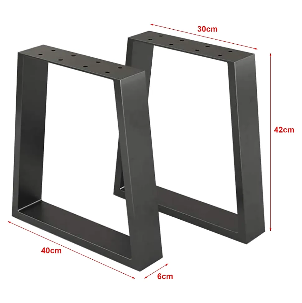 Ensemble de 2 pieds de tableCes deux pieds de style épuré en acier donnent non seulement une touche d’originalité à votre table, mais assurent la stablité optimale également.Description :- set de 2 pieds pour monter ses propres meubles- parfaitement adapté à la construction d’une table basse ou banc- résistant et facile à entretenirDimensions :- hauteur : 42 cm- largeur : 30 – 40 cm- profondeur : 6 cm- épaisseur du pied : 6 x 2 cmMatière :acier laquéCouleur :noir matContenu de la livraison :2 x pieds de table (le plateau ne fait pas partie de l’offre)Produit de la marque :[en.casa]