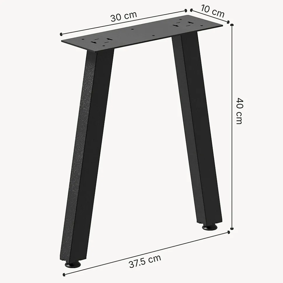 Lot de 2 pieds de tableCes piétements de table en lot de 2 allient solidité et style, pour vous permettre de réaliser facilement vos projets d’aménagement. Leur design sobre et moderne s’intègre harmonieusement dans différents univers déco, qu’ils soient industriels, contemporains ou plus minimalistes. Grâce à leur structure en acier robuste, ils offrent une excellente stabilité et constituent une base fiable pour vos créations DIY.Idéals pour concevoir une table basse, un petit meuble d’appoint ou encore une assise type banc, ces piétements vous donnent la liberté de choisir le plateau qui correspond à vos envies. Le revêtement en poudre protège l’acier et contribue à la durabilité, tout en facilitant l’entretien au quotidien.Détails du produit : - lot de 2 pieds de table pour créer vos meubles sur mesure - idéal pour fabriquer des bancs ou des tables basses - durable et facile d’entretienDimensions : - totales (hauteur x largeur) : 40 x 37,5 cm - plaque de support (largeur x profondeur) : 30 x 10 cm - barre en métal : 4 x 3 cmMatière : - acier laquéCouleur : noir matContenu de la livraison : 2 x piétement de table (livraison sans plateau)Produit de la marque :[en.casa]