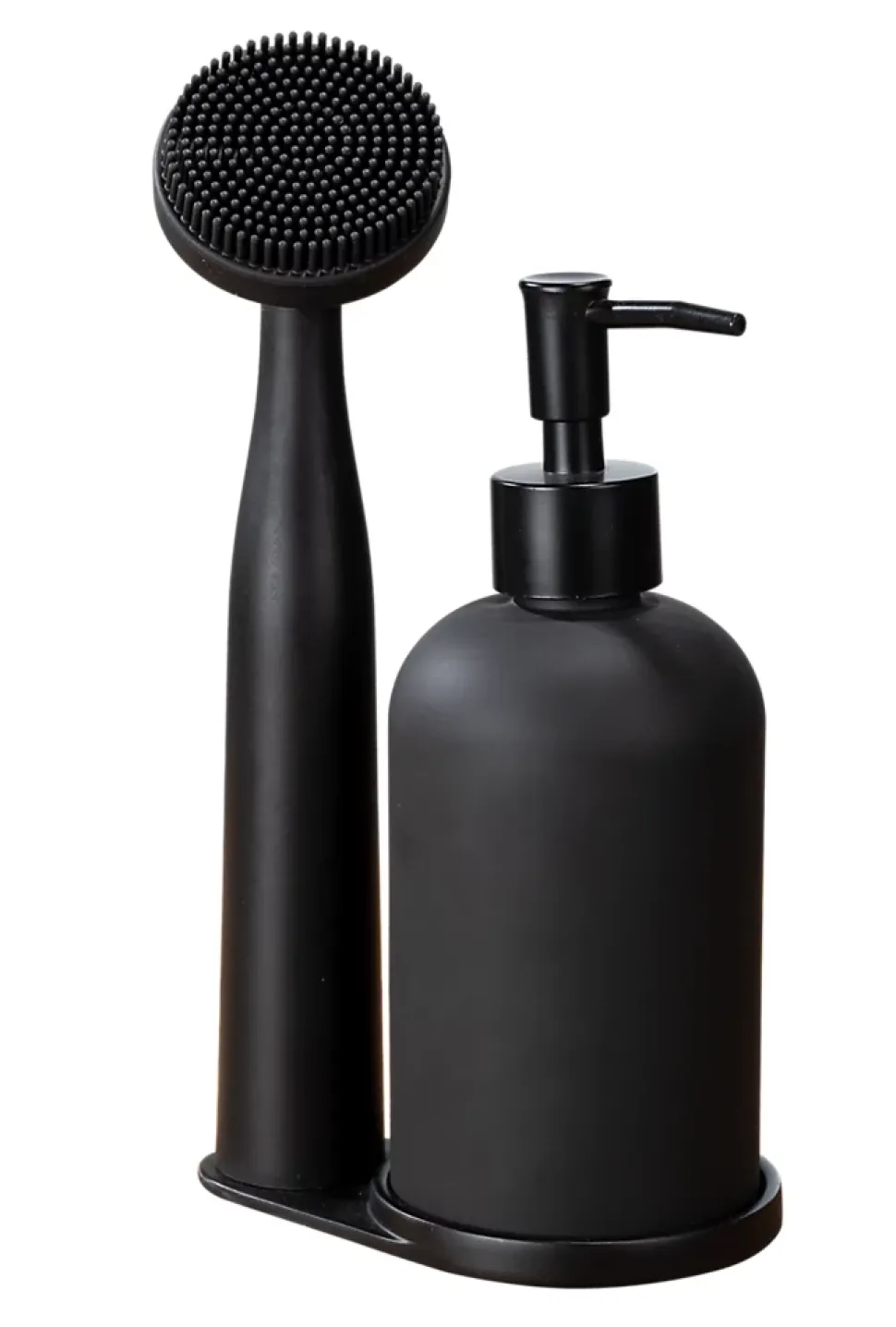 Set de rinçage composé d’un distributeur de liquide vaisselle, d’une brosse à vaisselle et d’un support. La brosse à vaisselle est particulièrement hygiénique, très résistante et permet un nettoyage doux des surfaces sensibles.