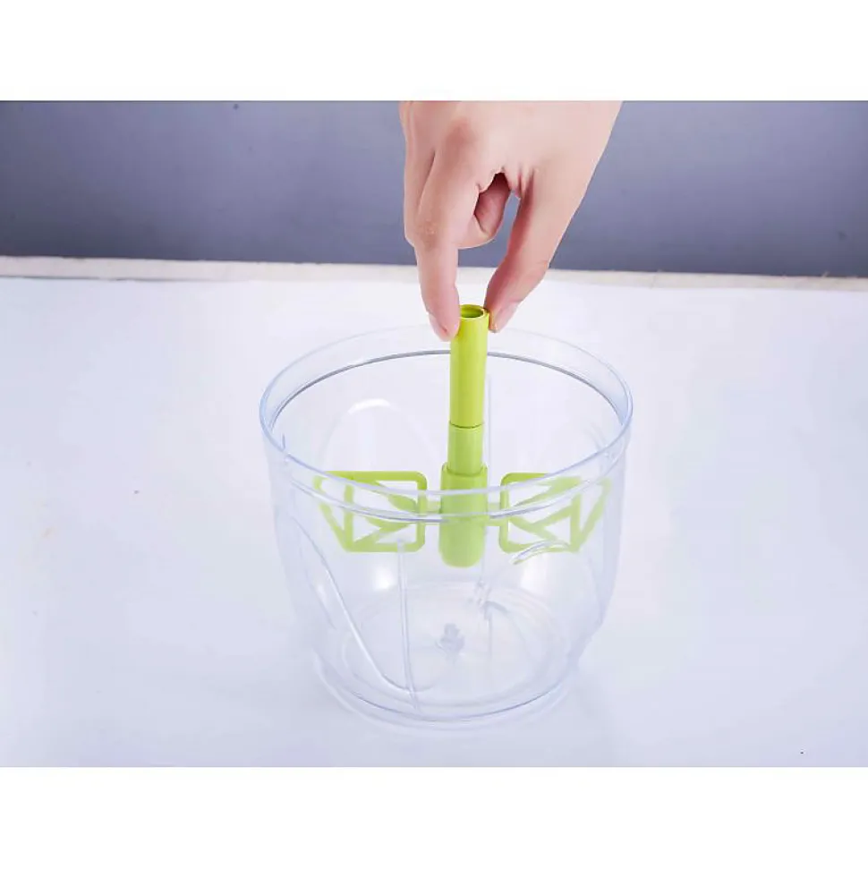 Avec ce Coupe légumes Set Salade , vous allez pouvoir découper, trancher, transporter, conserver et servir dans le même récipient !En un rien de temps, vous pourrez composer une salade en fonction de vos envies. Son couvercle poussoir vous assurera une utilisation en toute sécurité, son large choix de découpe s’adaptera à tous vos besoins et son grand saladier vous permettra de travailler dans les meilleures conditions possibles.Grâce à l’ensemble de ses accessoires vous allez pouvoir :- Essorer votre salade et l’arrêter de tourner en appuyant sur un simple bouton- Trancher en rondelle grâce à sa mandoline adaptable sur le couvercle- Râper fromages ou carottes- Émincer des morceaux de viande en dés- Effiler tous les légumesGrâce à ce Coupe légumes, vous pourrez en quelques minutes réaliser les plus complètes des salades : des salades de légumes, des salades de pâtes, des salades de fruits et des salades de patates. Son grand saladier vous permettra de vous en servir directement de plat pour servir à table vos compositions.Il pourra également servir de boîte de conservation grâce à son couvercle hermétique. Vous pourrez ainsi conserver vos salades en toute tranquillité.Pour nettoyer votre Coupe légumes, rien de plus facile, il vous suffit de retirer la grille de découpe afin d’éliminer les résidus et de placer le tout dans votre lave-vaisselle. De nombreuses fonctions en un seul outil: – 6 lames- saladier pour egoutter la nourriture- hachoir
