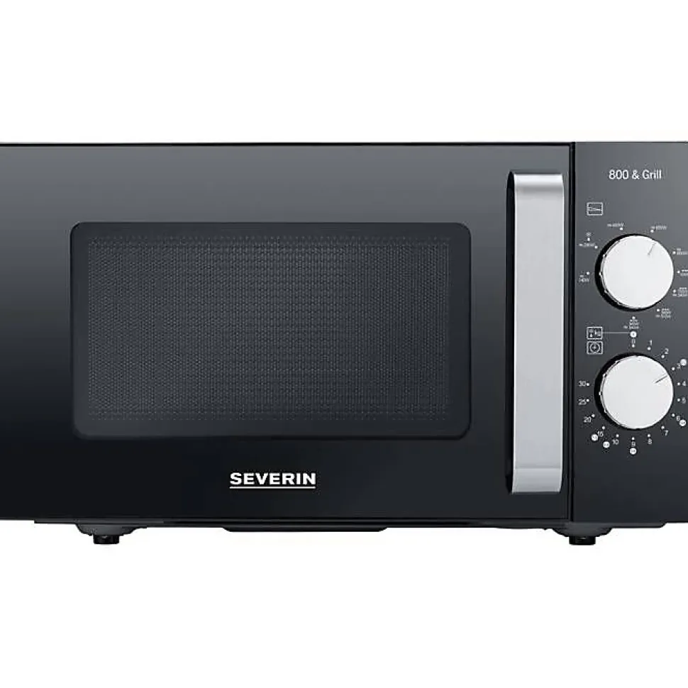 Four micro-ondes Severin 2 en 1 MW 7762 — 20 L, 800 W micro-ondes et 1000 W grill. Fond en verre plat innovant pour une cuisson homogène sans plateau tournant, nettoyage facile à la main, cuisson sur deux niveaux, 9 puissances et fonction décongélation selon le temps ou le poids, surface en céramique 26 x 26 cm, cavité de 17,5 cm de hauteur.