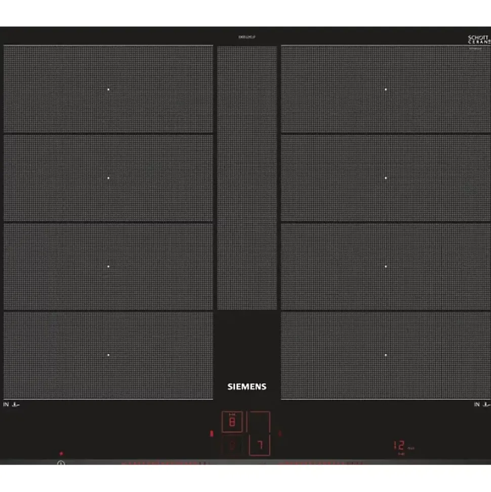 La plaque induction SIEMENS EX 651 LYC 1 F offre une expérience culinaire optimale avec ses 4 foyers, une puissance totale de 7400 W, un design moderne noir avec bords biseautés, des fonctionnalités avancées comme le système dual lightSlider, la zone flexible et le capteur fryingSensor, ainsi que la compatibilité Home Connect pour un contrôle à distance via smartphone. Elle est encastrable, dotée de commandes frontales sensitives, de 4 boosters, d’une minuterie et d’un verrouillage de sécurité enfants.