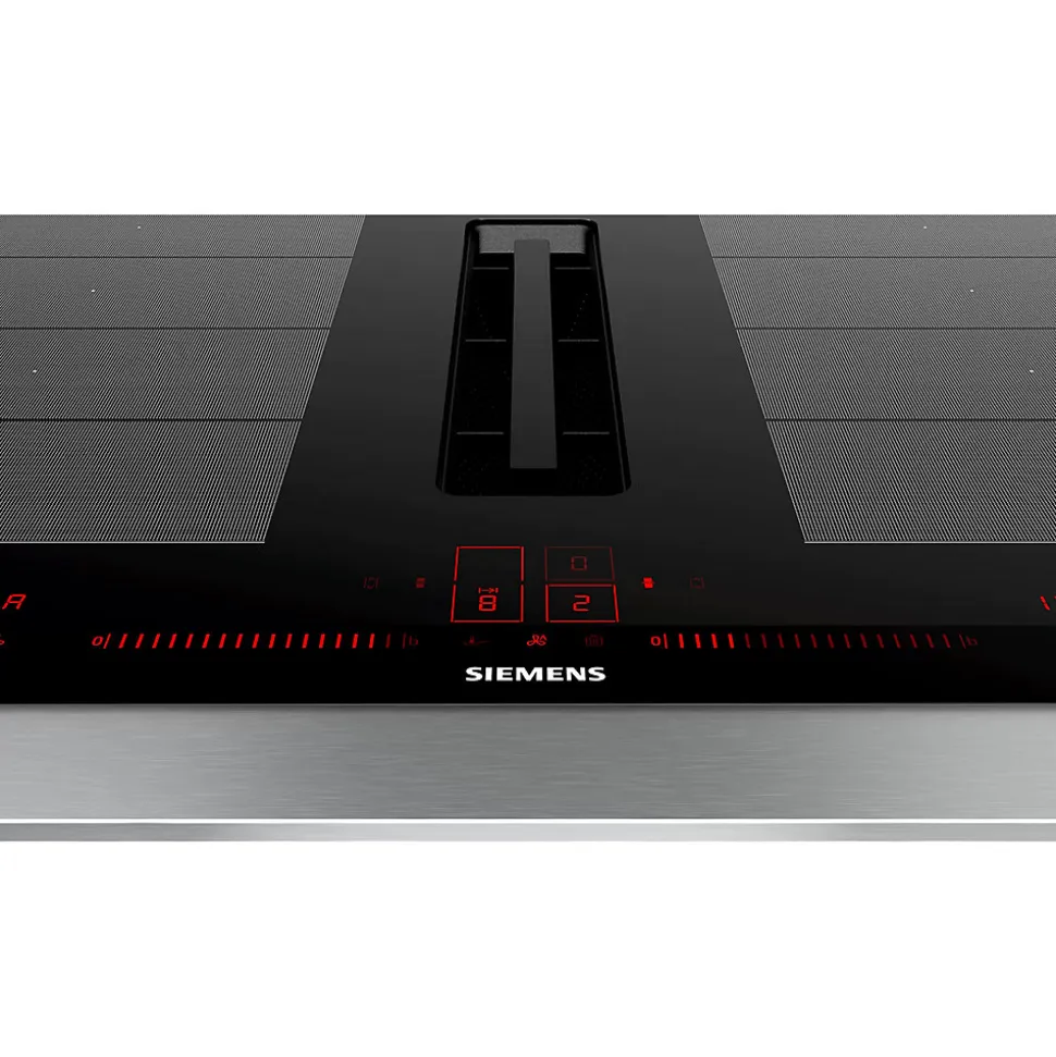 La plaque aspirante Siemens EX875LX67E combine design moderne et technologie avancée avec un système d’extraction intégré performant, zones FlexInduction modulables, contrôle tactile précis, sécurité renforcée et connectivité pour une cuisine confortable et efficace.