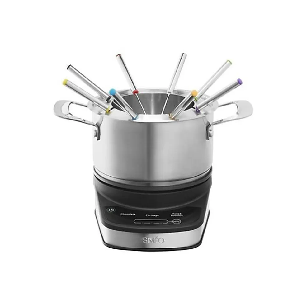 Puissance : 1200 WLe caquelon tout inox est sans revêtement antiadhésif, il offre ainsi une grande résistance aux rayuresCapacité totale 2,5 L et capacité utile 1,2 L, pour une utilisation généreuse3 modes de cuisson avec gestion automatique du cycle de chauffe qui s’adapte à chaque type de préparation :Bouillon et huile : asiatique, vigneronne, bourguignonne, bressane, Fromage : savoyardeHuile : Chocolat : noir,