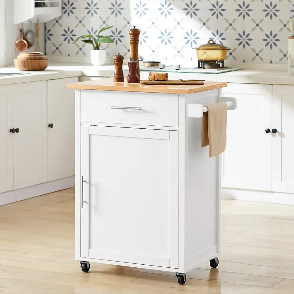 Ajoutez une touche contemporaine dans votre cuisine ce chariot de rangement. Il vous offre de grand espace de rangement pour divers ustensiles dans la cuisine, à la salle a manger, etc. De nombreux rangements grâce à un tiroir en partie haute, 1 tablette réglable en hauteur (2 positions) derrière la porte Avec un porte-serviettes pratique (peut être installé à gauche et à droite), qui peut également être utilisé comme poignée de chariot. Toutes les 4 roulettes pivotent en plastique fonctionnent bien et silencieusement. Deux d’entre elles sont équipées d’un frein. Matériaux : MDF classe E1. Dimension(LxPxH): 68 x 46 x 90 cm. Plan de travail : 62 x 46 cm. Capacité de charge jusqu’à 45 kg. Produits similaires : FKW98-SCH.