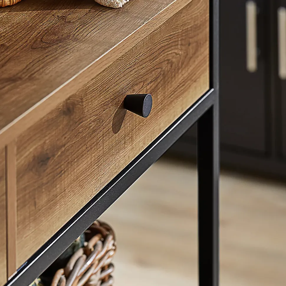 Ajoutez une touche industrielle dans votre cuisine ce chariot de rangement.Il vous offre de grand espace de rangement pour divers ustensiles dans la cuisine, à la salle à manger, etc.Desserte de cuisine en bois avec plan de travail supérieur. Le bois résistant se fond dans tous les intérieurs et donne un air agréable.Les deux étages de rangement sont parfaits pour vos épices, plats, pots ou autres dont vous avez souvent besoin, pour ranger les ustensiles rapidement accessibles.Les deux tiroirs permettent de ranger vos couverts et fournitures de cuisine.Grâce aux 4 roulettes pivotent en plastique (deux sont blocables) bien fonctionne beaucoup de mobilité et possibilité de placer le meuble n’importe où.Matériaux : panneaux de particules classe E1 et métal.Dimension(LxPxH) : 100x45x93cm.Capacité de charge jusqu’à 60 kg.Vous pouvez également combiner ce desserte roulante avec chariot de cuisine <a href= »https://www.sobuy.fr/products/sobuy%C2%AE-fkw111-pf-desserte-roulante-chariot-de-cuisine-meuble-de-rangement-a-roulettes-chariot-de-service?_pos=1&_sid=9c0f92e13&_ss=r » title= »FKW111-PF » style= »font-size: