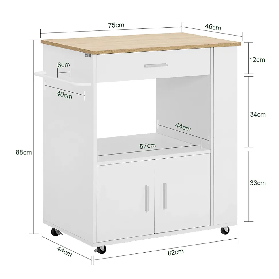 Le design classique de ce chariot s’adapte parfaitement à l’intérieur. vous pourrez l’utiliser au quotidien ou vous en aurez besoin : cuisine, salon, cellier ou cave. Ce meuble de cuisine bénéficie de nombreux espaces de rangement dont 1 tiroir, 1 cache étagère à épices sur le côté et 2 portes. Avec les 3 étagères latérales et un porte-essuie-tout, vous pouvez placer des boissons, des vins, des tasses, des serviettes, etc. La barre de chaque étagère peuvent empêcher des choses de tomber par terre. Vous pouvez stocker et présenter vos vins fins. En plus, vous avez toujours les bouteilles et les verres ensemble et vous n’avez pas besoin de les stocker séparément. Quatre roulettes pivotent multidirectionnelles et deux d’entre elles sont équipées d’un frein parking. Détails: – Matière : fabriqué panneau de copeaux et MDF. – Dimensions : L82 x P46 x H88 cm. – Poids de l’envoi : 29 kg. – Capacité de charge statique maximale : 75 kg – Installation facile avec la notice de montage illustrée.