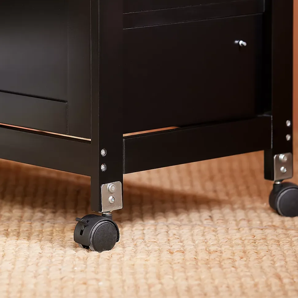 Cette moderne desserte de cuisine à roulettes est super pratique pour ranger vos verres de vin, bouteilles, ustensiles de cuisine, etc.C’est une excellente solution de rangement pour une petite cuisine.Il s’adapte bien à toutes les tendances de décoration intérieure.Ce n’est pas seulement un joli accessoire décoratif pour votre cuisine, mais aussi une idée de servir directement les repas à vos invités. Equipée de 1 plan de travail, 3 tiroirs et 2 étagères et 1 tablette amovible.La tablette peut être enlevée pour servir de plateau.Il offre un grand espace de rangement en économisant de l’espace au sol.4 roulettes détachables pour un mouvement sans effort.2 des roulettes comportent des freins pour le maintenir en place.Facile à nettoyer et facile d’entretien. Caractéristiques : – Matériaux de qualité, en bois MDF de classe E1. Roulettes en métal et plastique.-Dimensions : L68cmxP38cmxH85cm.- Dimensions du plan de travail: L68cmxP38cm.- Dimensions d’un tiroir : L30cmxP34cmxH23cm. – Capacité de charge max.: 50 kg.- Poids de l’envoi : 17.7kg.