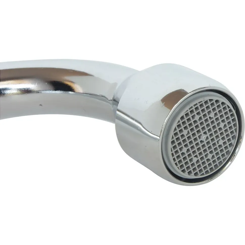 Ce bec à insertion crosse chromé est conçu pour les robinets muraux avec embase à insertion de 18 mm. Il dispose d’un écrou 20/27 (3/4″) et d’un aérateur femelle 22×100, garantissant un écoulement fluide et sans éclaboussures. Sa forme en col de cygne apporte à la fois confort et hauteur d’usage (190 mm), avec une saillie de 140 mm pour un bon dégagement au-dessus du lavabo ou de l’évier. Installation rapide et esthétique assurée.