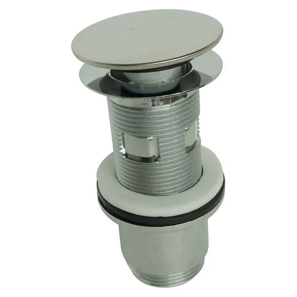 Bonde sécable en ABS à clapet rentrant pour tout type de lavabo – S’adapte à l’épaisseur et au matériau des lavabos et vasques – Perçage de lanterne facile pour ajout d’un trop plein – Ouverture/fermeture par pression du doigt.