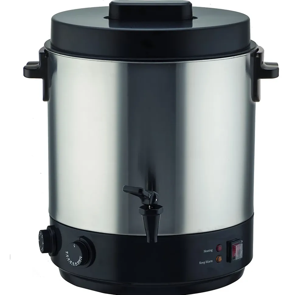 Stérilisateur électrique avec robinet et minuteur 31l 2100w inox Kitchen Move – Stérilisateur électrique inox 31 litres 2100 W SEQUOIA avec robinet Température réglable et timerCe stérilisateur en inox d’une capacité de 31 litres est l’accessoire idéal pour stériliser vos bocaux de confiture, faire du pot au feu, de la soupe en gros volume, bouillons de viande, du vin chaud… !La grande capacité de remplissage vous laisse de la place pour préparer jusqu’à 8 bocaux d’1 L de 85 mm de diamètre, ou bien 16 bocaux de 0,5 L.Pour un apéro : dégustation de vin à la maison, punch, cocktail, café ou thé : vous avez le choix ! Les boissons restent conservées en sécurité sans que le goût ne soit affecté.Pratique et autonome. Vous pourrez le transporter facilement grâce à des poignées optimisées thermos-isolantes ainsi qu’une protection contre la surchauffe – Stérilisateur électriquePuissance : 2100 WCapacité : 31 LThermostat réglable de 30 à 100 °CMinuteur jusqu’à 120 minutesAccessoire :- 1 x grille métalliqueRobinet de vidangePoignées thermos-isolantesAcier inox épais d’une épaisseur de 0,8 mmDiamètre intérieur : 37 cmDimensions : diamètre 39 x H49 cmPoids : 4.9 kgCouleur : inox et noir