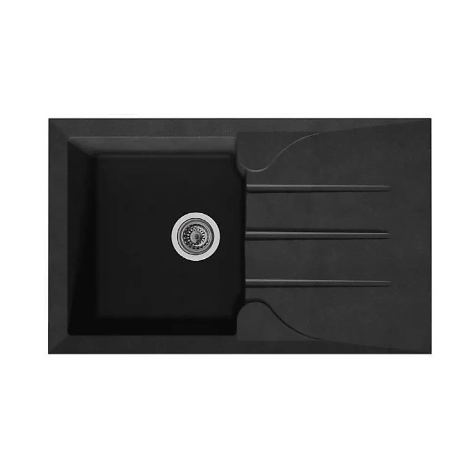 Evier Aloa SMC 1 bac – 1 égouttoir – Réversible – Vidage manuel bonde Ø90 mm – Coloris : noir – Dimensions : 81×50 cm.
