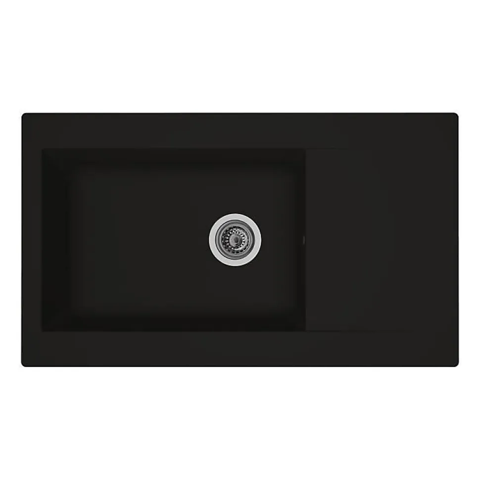 Evier Einna PIMC 1 grand bac – 1 égouttoir – Réversible – Vidage manuel bonde Ø90 mm – Coloris : noir – Dimensions : 86×50 cm.