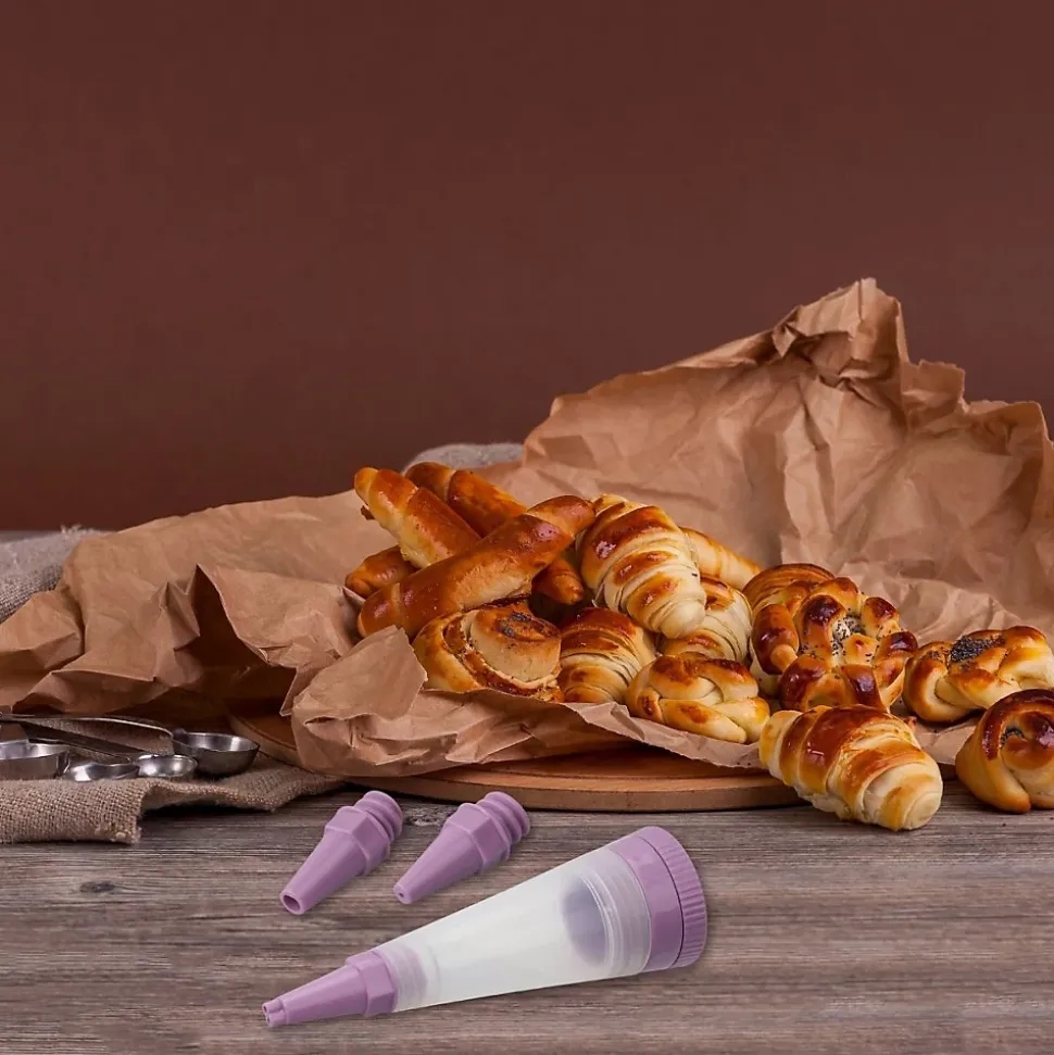 - DESCRIPTION : Stylo de pâtisserie et ses 3 embouts de décoration de gâteau. Vous pouvez y mettre toutes sortes de garnitures allant jusqu’à 100°C