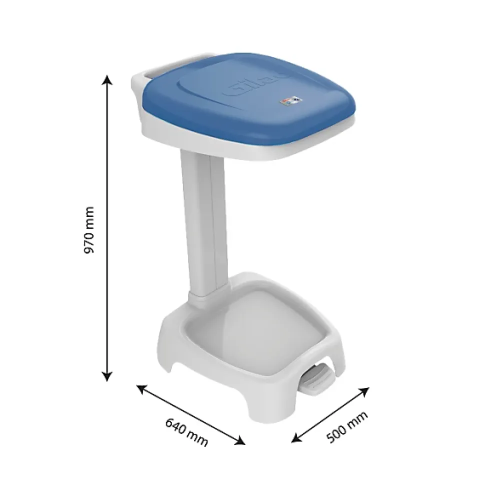 Support sac 120 L avec couvercle bleu Gilactiv conçu avec le procédé exclusif Sanitized, qui protège la surface du couvercle contre les virus et les bactéries. Efficacité antibactérienne et antivirale prouvée sur la surface du couvercle pour un large spectre de germes, dont le coronavirus humain HCoV-229E. Substance active à effet biocide : verre au phosphate d’argent. Des tests menés par un laboratoire français indépendant agréé par l’union européenne ont permis de mesurer la disparition de 98,6% du virus au bout de deux heures. Optez pour une protection renforcée avec Gilactiv.Les résultats des tests virucides sont disponibles sur demande. Le couvercle peut rester en position ouverte (ouverture manuelle) ou s’ouvrir et se refermer (quand il est actionné avec la pédale). La pédale permet également d’éviter les contaminations. Support sac équipé de 2 roues pour faciliter le déplacement. 2 roues supplémentaires sont disponibles en option. Mise en place et extraction du sac très facile. La poignée droite, à l’arrière, permet un meilleur positionnement contre les murs. 5 couleurs de couvercle adaptées au tri sélectif sont disponibles en PP. Support sac livré à assembler.
