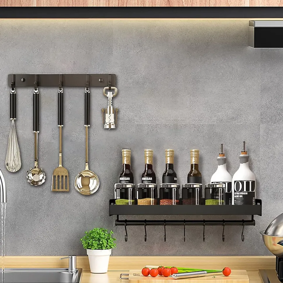 【Facile à nettoyer】 Vous vous inquiétez des taches et des taches sales après un certain temps ? Voici la solution. Vous pouvez retirer l’étagère à épices sans enlever la colle à l’arrière, le tampon adhésif de montage est séparable de l’étagère elle-même, et super facile à nettoyer.【Crochet et étagère de rangement en un seul】la taille de l’étagère à épices est de 40 cm (L) x 13 cm (l) x 10 cm (H). Erhöhen Sie die Höhe des Zauns, um zu verhindern, dass Flaschen fallen.Hakenleiste Größe beträgt 36 cm (L) *3 cm (H)【Espace de rangement pratique】En plus de tenir les canettes, il y a un rail de guidage avec 6 crochets en forme de S sous l’étagère à épices sans perçage. Vous pouvez accrocher des cuillères à soupe, des louches à pâtes et d’autres articles sur les crochets, ou retirer les crochets et utiliser les rails de guidage très pratiques comme porte-serviettes.【Facile à installer】2 méthodes d’installation simples telles que le perçage ou l’auto-collage. Pour les autocollants, il est recommandé de coller sur des surfaces lisses telles que le carrelage, le verre. Si vous souhaitez appliquer sur du ciment, du papier peint ou des surfaces peintes, veuillez utiliser une vis pour percer.