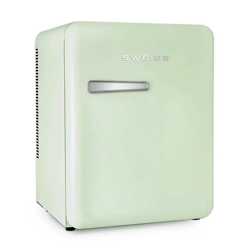 Le mini bar au design vintage WEISS a tout pour vous plaire ! Grâce à son format ultra compacte, il s’adapte à tous vos espaces. D’une capacité de 31 L, ce mini bar comprend une clayette et 2 compartiments de rangement dans la porte. Grâce à son thermostat réglable, ajustez la température à vos besoins, entre 6 et 15°C. Son design retro fait de lui un immanquable pour votre intérieur. Sa poignée chromée et des bords arrondis lui donnent un style élégant. Chez vous, dans une chambre d’hôtel ou au bureau, gardez toujours vos boissons au frais avec la gamme WEISS !CARACTÉRISTIQUES :Capacité : 31 L Hauteur : 54 cm Design vintage Capacité de refroidissement : 6 – 15℃ Thermostat réglable Pieds réglables Niveau sonore : 24dB Compact Accessoire : poignée Classe énergétique : E Puissance : 58W