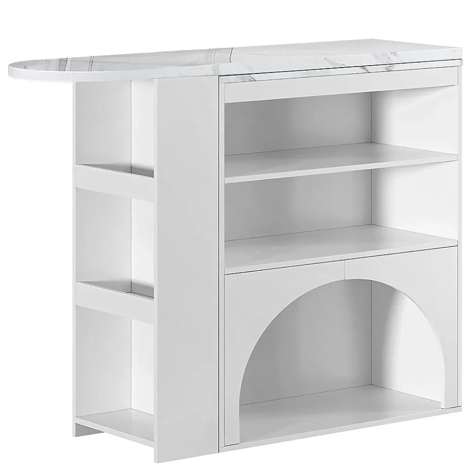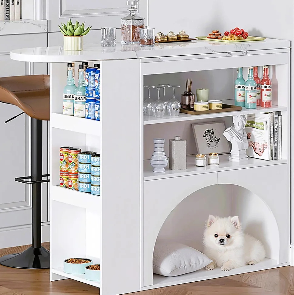 Caractéristiques du produit1. Système d’extension flexible : la surface de travail principale (120 cm) s’étend jusqu’à environ 180 cm (zone d’extension d’environ 80 cm) – pour les repas à plusieurs ou la préparation temporaire, avec une extension facile ; une fois repliée, elle se transforme en table de bar élancée, parfaite pour les petits espaces, alliant « extension » et « gain de place ».2. Passage en arc adapté aux animaux domestiques : dans la partie inférieure, le passage en arc sert d’espace de repos pour les animaux domestiques (lit pour chat/chien) et d’espace de rangement pour les jouets/la nourriture, ce qui facilite l’interaction entre les humains et les animaux domestiques ; le design en arc adoucit les bords durs et crée un aspect plus doux.Longueur assemblé (cm) : 120,00Largeur assemblé (cm) : 40,00Hauteur assemblé (cm) : 100,00Poids du produit (kg) : 35,20Dimensions du colisSous-article 1 : 93,98 * 48,26 * 13,34 cm 18,25 kgSous-article 2 : 134,62 * 48,26 * 12,95 cm 21,7 kgInformations sur le produitPlateau de table : capacité de charge de 30 kg ;Tablettes et espaces de rangement latéraux : capacité de charge de 15 kg chacun ;Espace de repos pour animaux : capacité de charge de 40 kg.Lieu d’origine : ChineCouleur principale : blancMatériau principal : MDF