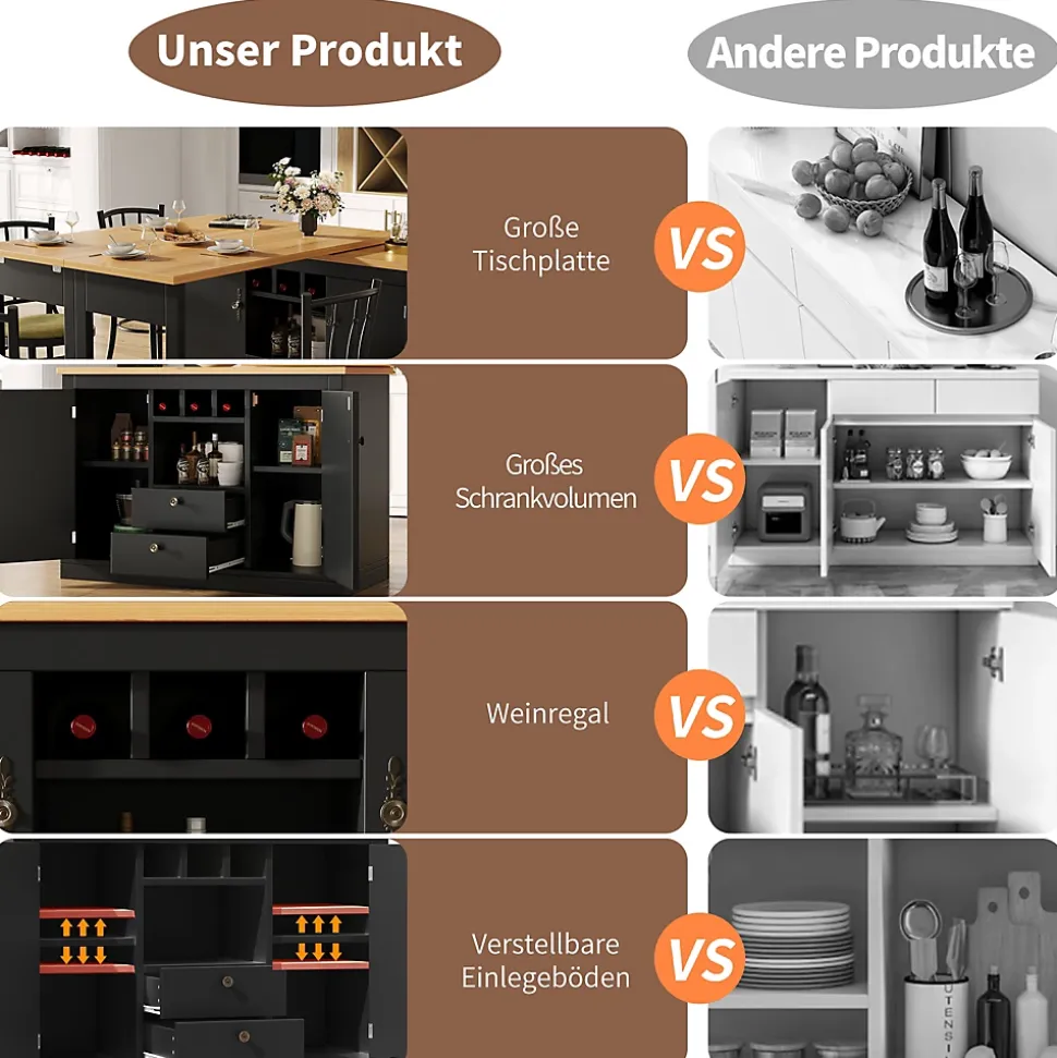 - 【Rangements intelligents】 Surface de travail spacieuse, étagères modulables et porte-bouteilles intégré facilitent l’organisation des boissons, vaisselle et objets du quotidien, optimisant l’espace et réduisant le désordre dans votre intérieur.