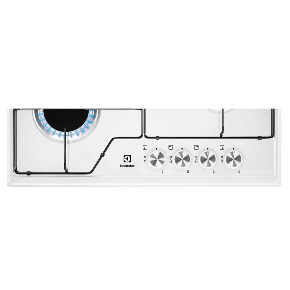 Table de cuisson gaz 60cm 4 feux 7700w noir Electrolux – Table de cuisson gaz KGS6424W de l’Electrolux.Efficacité énergétique et puissance :Les brûleurs de cette plaque de cuisson gaz d’Electrolux sont conçus pour atteindre rapidement la chaleur souhaitée. Rapide et plus puissant tout en économisant jusqu’à 20% d’énergie.Sécurité garantie :Le design des supports de casseroles de cet appareil garantie stabilité à vos récipients, quelles que soient leur taille et leur position sur la table de cuisson.Style et élégance dans votre cuisine grâce au design ultra fin de la table :Le design élégant et moderne de la table s’intégre parfaitement dans votre cuisine grâce à ses finitions harmonieuses. – Type : Plaque de cuisson gaz.Gamme : Série 600.Type d’encastrement : A recouvrement plan de travail.Nbre foyer(s) : 4.Type de commande(s) : Manettes.Type d’allumage : Electronique intégré aux manettes.Foyer le + puissant (W) : 3000.Matière des grilles : Email.Connecté : Non.Sécurité gaz : Oui.Grilles émail : Oui.Sécurité gaz par thermocouple : Oui.Puissance de raccordement (W) : 7700.Longueur du cordon (m) : 1.1.Diamètre du + grand foyer (cm) : 10.Foyer AVG Gaz rapide : 3000 W/100 mm.Foyer ARG Gaz semi-rapide : 1900 W/70 mm.Foyer AVD Gaz auxiliaire : 1000 W/54 mm.Foyer ARD Gaz semi-rapide : 1900 W/70 mm.Avant gauche : 57.4.Arrière gauche : 59.5.Arrière droite : 59.5.Couleur : Blanc.Largeur (cm) : 59.5.Profondeur (cm) : 51.Encastrement H x L x P (cm) : 4 x 56 x 48.Poids (kg) : 8.2.