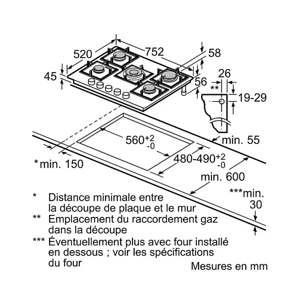 Table de cuisson gaz 75cm 5 feux 11500w noir Bosch – La table de cuisson au gaz PPQ7A6I40 de Bosch est l’alliance parfaite entre design moderne et performance culinaire.Conçue pour les passionnés de cuisine, elle offre une expérience de cuisson exceptionnelle grâce à ses caractéristiques innovantes et à sa qualité de fabrication supérieure.Avec une largeur de 75 cm, ce modèle Série 6 s’intègre harmonieusement dans diverses configurations de cuisine. Sa surface en verre trempé noir confère une esthétique contemporaine et facilite le nettoyage. Les grilles en fonte robustes assurent une stabilité optimale des ustensiles, ajoutant une touche professionnelle à votre espace culinaire.Doté d’une puissance totale de 11500 Watts, cet appareil est équipé de 5 foyers à gaz afin de répondre à tous vos besoins culinaires. En effet, son foyer wok de 4000 Watts est idéal pour des cuissons rapides et des sautés savoureux. De plus, sa technologie FlameSelect offre 9 niveaux de puissance vous permettant d’ajuster avec précision la flamme pour des résultats de cuisson parfaits.La sécurité thermocouple coupe automatiquement l’alimentation en gaz en cas d’extinction accidentelle de la flamme, assurant une utilisation sereine au quotidien. – Type de produit : Plaque gaz.Type d’installation : Encastrable.Nature de la surface : Verre.Cadre Inox : Non.Matière des grilles : Fonte.Nombre de foyers : 5.Type de foyer : Gaz + Wok.Puissance foyer ARG/ARD (en W) : 1750 / 3000.Puissance foyer AVG/AVD (en W) : 1000 / 1750.Foyer central (en W) : 4000.Puissance totale (en W) : 11500.Bandeau de commande : Frontal.Nature des commandes : Flameselect.Allumage électronique : Oui.Sécurité thermocouple : Oui.Injecteur (Gicleur) : Gaz de ville et butane.Matériau de la surface : Verre trempé.Minuterie : Non.Option Boost : Non.Plaque aspirante : Non.Zone libre : Sans.Plaque de