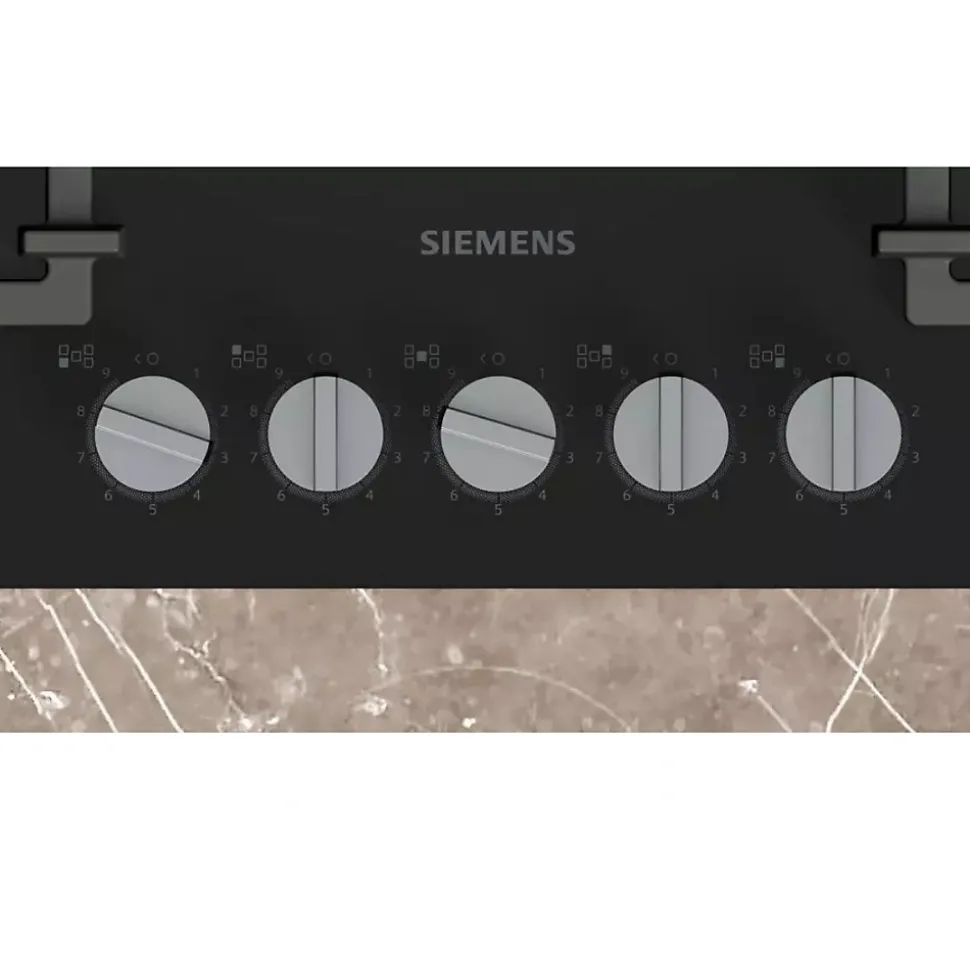 Table de cuisson gaz 75cm 5 feux 11500w noir Siemens – Table de cuisson gaz en verre trempé iQ500 de Siemens EP7A6QI40 avec technologie stepFlame pour un contrôle précis de la flamme, avec boutons amovibles et supports de casseroles semi-continus pour un nettoyage facile.Technologie stepFlame : contrôle précis de la flamme avec neuf réglages différents.Boutons métalliques amovibles : pour un nettoyage aisé et un contrôle précis de la cuisson.Support de casserole semi-continu : facile à manipuler et à nettoyer.Surface en verre trempé noir : extrêmement résistant à la chaleur.Verrouillage de sécurité du gaz : arrête instantanément le flux de gaz si la flamme s’éteint, garantissant ainsi la sécurité. – Type de produit :Table de cuisson gaz.Type: Table verre.Gamme : iQ500.Type d’encastrement : A semi-fleur de plan de travail.Nbre foyer(s) : 5.Type de commande(s) : Manettes.Emplacement des commandes : Frontales.Type d’allumage : Intégré une main.Zone de cuisson modulable (flex) : Non.Foyer le + puissant (W) : 4000.Matière de la surface : Verre.Connecté : Non.Sécurité gaz : Oui.Puissance de raccordement (W) : 11500.Tension (V) : 220-240.Fréquence (Hz) : 50/60.Intensité (A) : 3.Longueur du cordon (m) : 1.Autre(s) fonction(s) : Technologie StepFlame (Ajustez précisément la flamme avec neuf niveaux réglables différents).Couleur : Noir.Hauteur (cm) : 5.4.Largeur (cm) : 75.2.Profondeur (cm) : 52.Encastrement H x L x P (cm) : 4.5 x 56 x 48-49.Poids (kg) : 19.9.