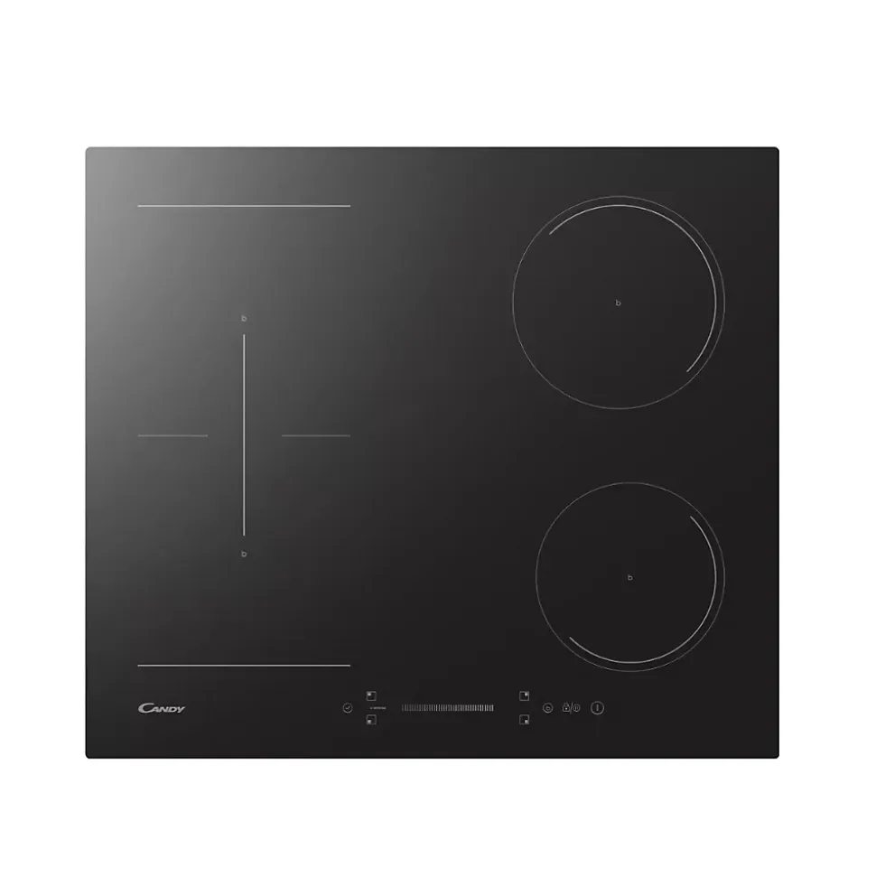 Table de cuisson induction 60cm 4 feux Candy – Table de cuisson CTP644SCBB de Candy.Power management :Possibilité de régler la puissance totale de la plaque de 12A à 32A pour bénéficier des avantages de l’induction même en cas d’installation électrique avec puissance limitée.Monoslider :Très pratique, la commande par monoslider permet d’accéder en toute précision et d’un simple effleurement du doigt au niveau de cuisson souhaité.Twin power :La zone Twin Power vous permet de cuisiner sur une grande zone ou sur 2 petites, selon vos besoins. La puissance maximale de 3,6 kW garantit des performances de cuisson optimalesFonction pause :Cette fonction met tous les foyers en pause à une puissance réduite tout en mémorisant les paramètres de cuisson programmés (puissance et minuterie) qui peuvent ensuite être réactivés. – Type de produit : Plaque à induction.Type d’encastrement : Standard ou à fleur de plan de travail.Nbre foyer(s) : 4.Type de commande(s) : Monoslider.Emplacement des commandes : Frontales.Zone de cuisson modulable (flex) : Oui.Type(s) de zone(s) modulable(s) : Zone Twin Power.Foyer le + puissant (W) : 1800.Foyer le + puissant avec booster (W) : 2100.Puissance totale max zone modulable (W) : 3600.Matière de la surface : Vitrocéramique.Hotte intégrée : Non.Connecté : Non.Nbre de positions de cuisson : 9.Booster(s) : Oui.Nbre de booster(s) : 4.Minuteur : Oui.Autre(s) fonction(s) : Pause, Power Management (de 12 à 32 A).Nbre de niveaux de sécurité : 10.Témoin(s) de chaleur résiduelle : Oui.Verrouillage des commandes / Sécurité enfant : Oui.Anti-débordement : Oui.Anti-surchauffe : Oui.Détection de casseroles : Oui.Arrêt automatique : Oui.Détection de petits objets / ustensiles : Oui.Autre(s) sécurité(s) : Touche On/Off.Puissance de raccordement (W) : 7000.Tension (V) :