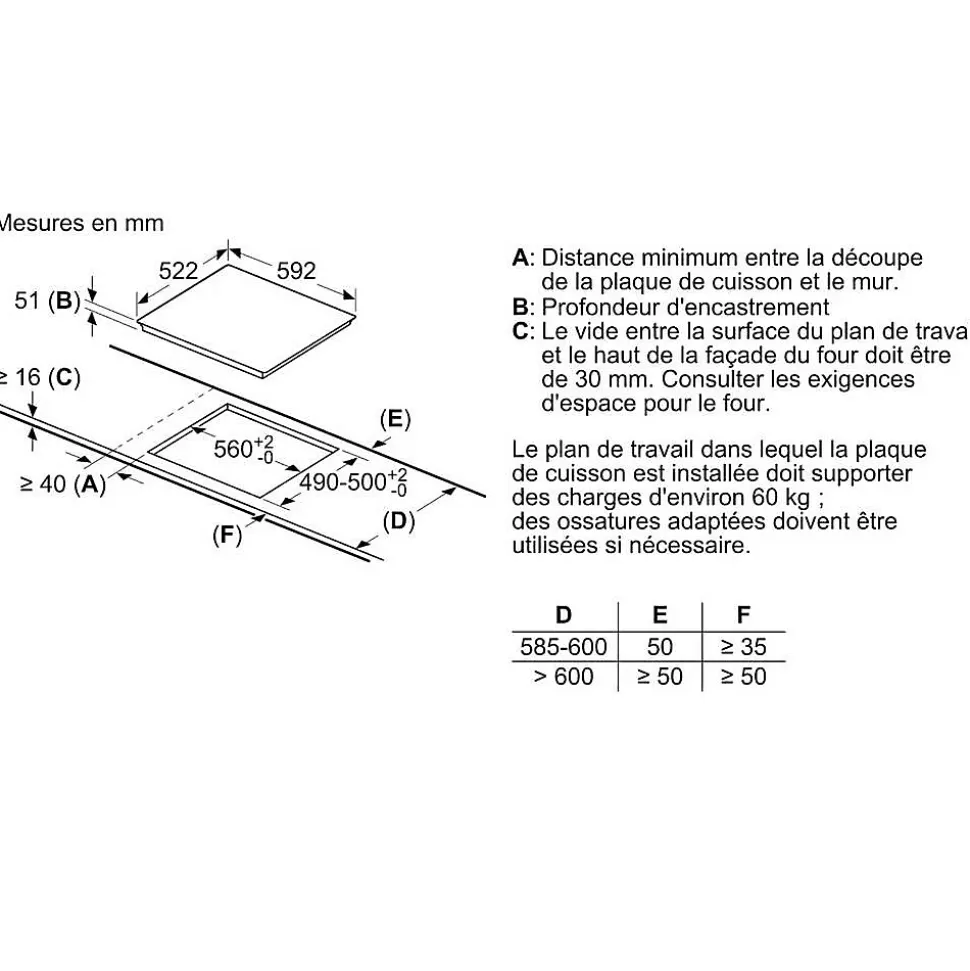 Table de cuisson induction 60cm 4 foyers 4600w noir Siemens – Avec la table combiInduction iQ500 Siemens EE611BPB5E, des nouvelles possibilités de cuisson s’offrent à vous. La technologie combiInduction vous permet de cuisiner avec de grands récipients. Le bandeau touchControl permet de contrôler très précisément chacune des quatre zones de cuisson. Fonction powerBoost : jusqu’à 50 % de puissance en plus sur une zone à induction. Minuterie avec coupure automatique : la zone de cuisson se coupe automatiquement lorsque le temps de cuisson est écoulé. La sécurité enfants bloque toutes les fonctions, prévenant un allumage accidentel. – Type de produit : Table de cuisson 60 cm.combiZone.Zone de cuisson avant gauche : 180 mm, 1.8 kW (PowerBoost 3 kW).Zone de cuisson arrière gauche : 180 mm, 1.8 kW (PowerBoost 3 kW).Zone de cuisson arrière droite : 145 mm , 1.4 kW (PowerBoost 2.2 kW).Zone de cuisson avant droite : 210 mm, 2.2 kW (PowerBoost 3 kW).Commande touchControl (+/-).17 positions de réglage.quickStop : éteignez rapidement une zone de cuisson en appuyant longuementTimer avec fonction arrêt : éteint la zone de cuisson à la fin du temps programmé (ex. : pour les œufs à la coque).Timer : une alarme retentit à la fin du temps programmé (ex. : pour les pâtes).powerBoost sur chaque foyer.Fonction QuickStart.Fonction ReStart.Sans cadre.Interrupteur principal.Témoin de chaleur résiduelle à 2 niveaux.Sécurité surchauffe.Sécurité enfants.Épaisseur minimale du plan de travail : 16 mm.Puissance de raccordement : 4.6 kW.Fonction PowerManagement.Design : Encastrable.Type d’énergie : Électrique.Nombre de foyers : 4.Témoin de chaleur résiduelle : Indépendant.Emplacement du bandeau de commande : Devant.Matériau de la surface : Vitrocéramique.Longueur du cordon électrique : 110.0 cm.Tension : 220-240 V.Couleur de la surface :