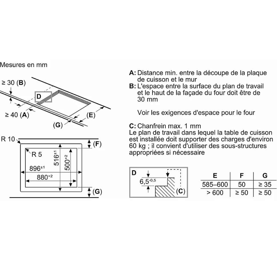 Table de cuisson induction 90cm 5 feux 1100w noir Neff – Plaque de cuisson à induction Flex autonome N 90 Neff T69PTX4L0 avec commande Twist Pad. Flex Induction : votre table de cuisson détecte chaque casserole et chauffe exactement la zone correspondante. Hotte contrôlable via la table de cuisson – commande pratique de la hotte par la plaque de cuisson. Power Boost : boostez la puissance de vos plaques quand vous avez besoin de chauffer plus vite. Induction : la chaleur est générée directement dans la casserole pour une cuisson précise qui s’arrête dès que le courant est coupé. – Type de tables de cuisson : Table induction.Largeur : 90 cm.Nombre de foyers : 5.Dimension des zones de cuisson : 1 x (30,0 x 23,0 cm), 1 x (40,0 x 23,0 cm), 1 x (40,0 x 23,0 cm).Puissance des zones de cuisson : 1 x 2.6 (3.7) kW, 4 x 2.2 (3.7) kW.Matériau de base de la surface : Vitrocéramique.Design : A fleur de plan.Puissance de raccordement : 11 100 W.Tension : 220-240 V.Longueur du cordon électrique : 110,0 cm.Système de commande : TwistPad.Nombre : 17 positions de réglage.Power Boost – chauffe plus rapidement : Oui.activeLight Plus : non.Frying sensor : Oui.cookingSensor : capteur de température des liquides (en option) : non.Quick start : Oui.Fonction maintien au chaud : non.Minuterie : Oui.Home Connect – Commande et diagnostic à distance : Oui.Home Connect : iService Remote.Contrôle de la hotte via la table de cuisson : Oui.Témoin de chaleur résiduelle : Indépendant.Dispositif de sécurité : détection de casserole, Fonction de gestion d’énergie, fonction pause, limitation de durée, sécurité-enfants.Accessoires inclus : 1 x Twist Pad.Couleur et finition : Noir.Dimensions niche H x L x P : 56 x 896 x 516 mm.Dimensions appareil H x L x P : 56 x 892 x 512 mm.Poids net : 17.8 kg.