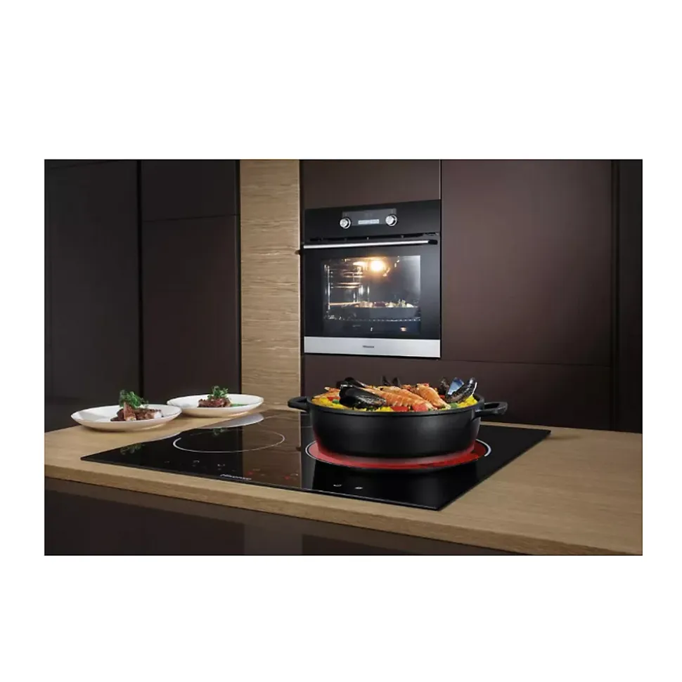Table de cuisson vitrocéramique 60cm 3 feux 5700w noir Hisense – Table de cuisson vitrocéramique E6332BSCE de HisenseProfitez d’une large zone de cuisson de 29,5 cm pour mijoter de bons petits plats dans des grandes casseroles.Réglez facilement le temps de cuisson grâce au minuteur qui indiquera via un signal sonore quand le repas est prêt !Contrôlez en toute simplicité votre table de cuisson avec le bandeau de commandes facile et intuitif. – Type de produit : Table de cuisson Hi-Light.Type d’appareil : Encastrable.Type de commandes : Touches sensitives.Emplacement du bandeau : À l’avant de la table de cuisson.Matériau de la surface de cuisson : Vitrocéramique.Nombre de foyers : 3.Dimensions foyer avant gauche : 200 mm.Puissance foyer avant gauche : 1800 W.Dimensions foyer arrière gauche : 165 mm.Puissance foyer arrière gauche : 1200 W.Puissance maximale : 5700 W.Alimentation : 220V-240 V / 50/60 Hz.Foyer central droit : Hi-Light à 2 extensions concentriques.Dimensions foyer central droit : 295 mm.Puissance foyer central droit : 1050/1950/2700 W.Minuteur : Oui.Minuteur d’œufs : Oui.Témoin de chaleur résiduelle : Oui.Sécurité enfants : Oui.Couleur : Noir.Dimension du produit (L*P*H, en mm) 590*520*51.Dimension de la niche d’encastrement : (L*P*H en mm) : 560*480*50.Poids (kg) : 7.5 Kg.