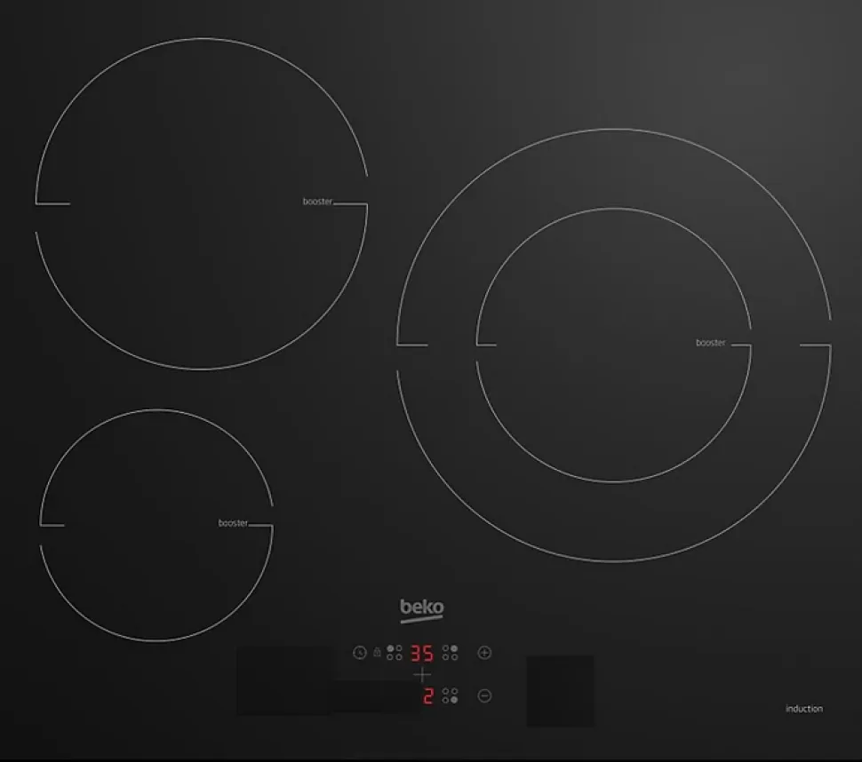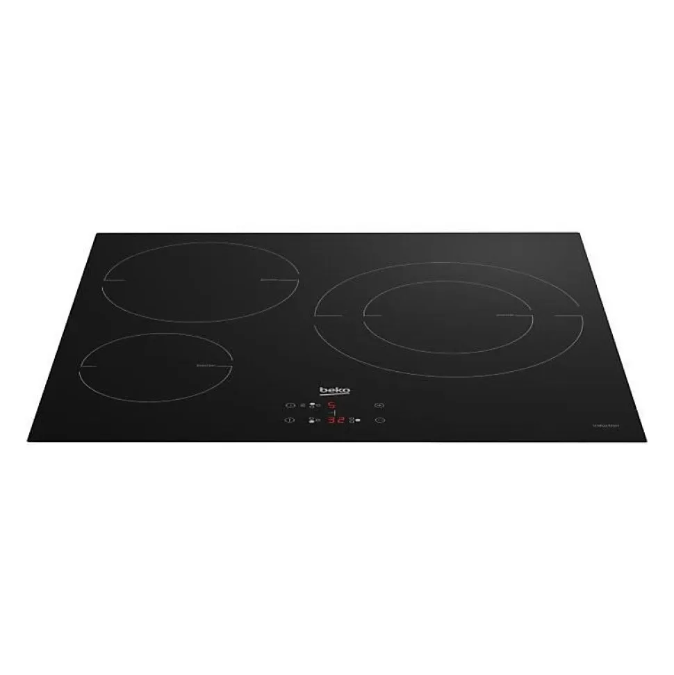 Table de cuissson à induction 60cm 3 feux 7200w noir Beko – Table de cuissson à induction HII63405MT BEKO.Commandes centralisées : Des commandes simples.Avec ce panneau de commande sensitif centralisé, vous pouvez sélectionner le foyer à utiliser et régler le niveau de température. Vous disposerez de 9 niveaux de puissance. Vous pouvez aussi régler le minuteur et de la sécurité enfant.Booster 3600 W : Accélérez vos cuissons.Le booster de 3600 W vous fait gagner énormément en rapidité, il vous permet de saisir vite et vous offre d’excellentes performances de cuisson en un temps très court.Timer : Respecter les temps de cuisson.Les minuteries vous permettent de programmer une fin de cuisson. Une sonnerie indique la fin de cuisson et le foyer est coupé automatiquement si la surface est encore chaude.Puissance totale 7200 W : Bénéficiez d’une puissance jusqu’à 7200WLa puissance totale de la table de cuisson peut s’élever jusqu’à 7200 W. Elle vous offre ainsi la souplesse de cuire ou faire bouillir votre eau très rapidement, mais aussi de faire mijoter en douceur.Sécurité enfant : Évitez toute manipulation inopinée.Le verrouillage du clavier peut être activé afin de bloquer toutes les fonctions de la table, évitant toutes manipulations inopportunes. – Type de produit : Table de cuisson induction.Type de plaque : Induction.Type d’encastrement : A recouvrement plan de travail.Energie : Electricité.Hotte intégrée : Non.Nbre foyer(s) : 3.Touche(s) sensitive(s) : Oui.Type de commande(s) : Tactiles.Position des commandes : Frontale.Zone de cuisson modulable (flex) : Non.Foyer le + puissant (W) : 2 300.Foyer le + puissant avec booster (W) : 3 600.Matière de la surface : Vitrocéramique.Couleur : Noir.Finition / Nuance : Verre.Connecté : NonNbre de positions de cuisson : 9.Booster(s) : Oui.Nbre de booster(s) : 3.Minuterie : Oui.Nbre de minuterie(s) : 3.Témoin(s) de
