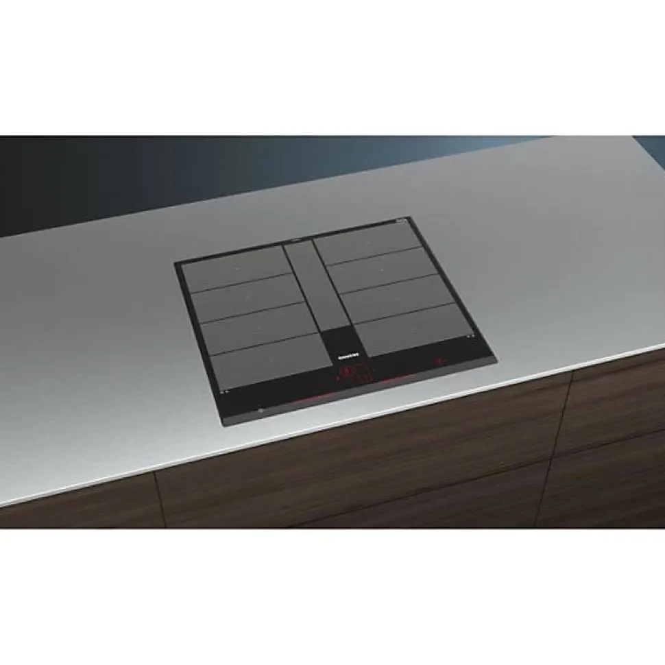 Découvrez la table induction SIEMENS IQ700 EX651LYC1F, un modele de 60 cm avec 4 foyers et 7 400 W. Son design noir élégant et son contrôle Dual LightSlider offrent une expérience intuitive. Avec 2 zones flex, elle s’adapte a toutes vos casseroles. Idéale pour les cuisines de taille moyenne a petite, ses dimensions sont de 59,2 x 52,2 cm.