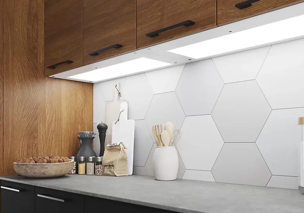 La tablette avec LED intégrées de dessous de meuble haut GoodHome Caraway blanc est une solution pratique et esthétique pour améliorer l’éclairage de votre cuisine, particulièrement pour les espaces sous les armoires ou meubles hauts. Elle combine éclairage et rangement de manière efficace et élégante.
