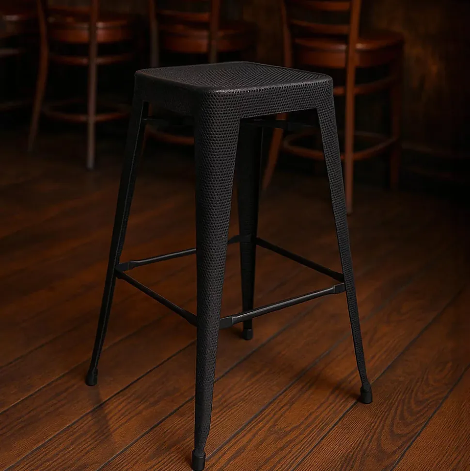Tabouret de bar EtowahLe tabouret de bar Etowah allie un design industriel urbain à une fonctionnalité bien pensée, parfaite pour la maison, la gastronomie et les événements.La structure métallique perforée garantit la robustesse pour un poids propre de seulement quatre kilogrammes et une capacité de charge allant jusqu’à 120 kilogrammes. Avec une hauteur d’assise de 78 centimètres, il s’adapte parfaitement aux comptoirs et aux tables hautes. Des protections de sol antidérapantes protègent les sols sensibles et assurent une bonne stabilité.Le repose-pieds intégré augmente le confort d’assise, tandis que le design empilable permet un gain de place maximal. Grâce à sa surface facile d’entretien, le tabouret Etowah se nettoie rapidement et conserve sa finition stylée.Détails:Largeur totale : 44 cmHauteur totale : 78 cmProfondeur totale : 44 cmHauteur d’assise : 78 cmAssise (l x p) : 30 x 30 cmMax. Capacité de charge : 120 kgPoids : 4 kgPiétement:Matériau : métal perforéProtections de sol inclusesAvec repose-piedsConseils d’entretien:Pour le nettoyage, nous recommandons un chiffon en coton humidifié avec de l’eau tiède.