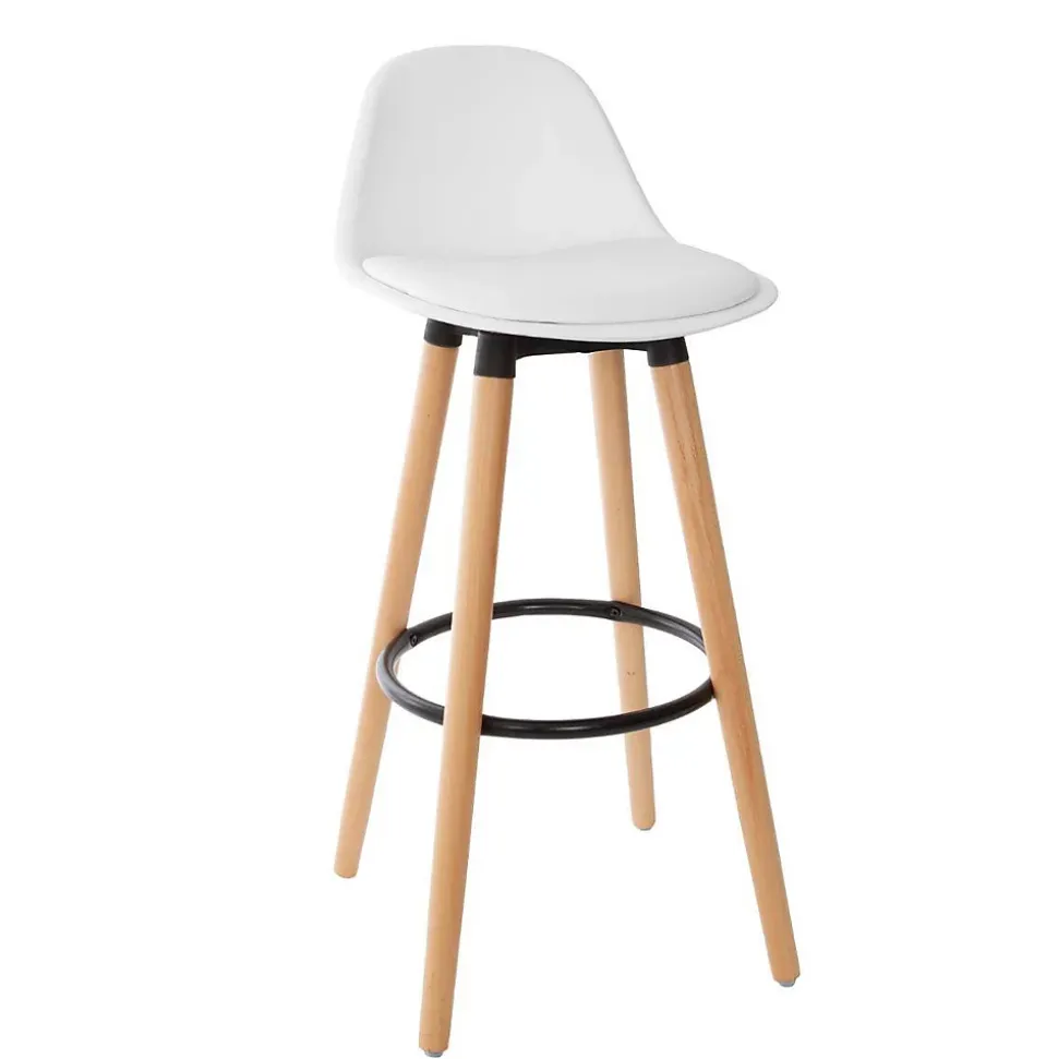 Tabouret de bar confortable Assise Blanche et Pieds en Bois H 92 cm – Dimensions : L. 42,5 x l. 39,5 x H. 92 cm – Hauteur d’assise : H. 71,5 cm – Repose-pieds : H. 30 cm – Matière des pieds : Bois de Hêtre – Matière du repose-pieds : Fer – Matière de la structure assise : Polypropylène – Matière du rembourrage coussin : Mousse Polyuréthane (PU) – Matière du revêtement coussin : Polyuréthane – Poids : 4,5 kg