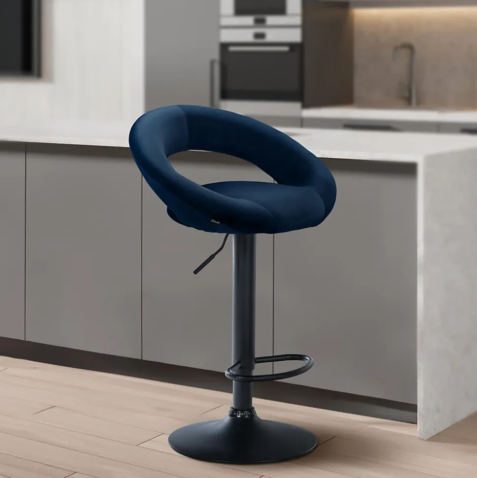 Tabouret de bar Olinda revêtement veloursLe tabouret de bar Olinda incarne l’élégance intemporelle et le confort moderne. Son revêtement en velours confère un flair moderne et offre également une sensation d’assise agréable.Le tabouret de bar est réglable en hauteur en continu, ce qui permet de régler la hauteur d’assise entre 60 et 81 cm. Ainsi, le tabouret peut être utilisé de manière polyvalente à différentes hauteurs de table ou de comptoir.Avec son dossier incurvé, il offre un soutien confortable, notamment pour le bas du dos. Le piètement métallique robuste avec repose-pieds garantit la stabilité et une capacité de charge allant jusqu’à 120 kilogrammes. Des protections de sol protègent les sols des rayures.Détails:Hauteur totale : 80 – 101 cmLargeur totale : 53 cmProfondeur totale : 47 cmHauteur d’assise : 60 – 81 cmSurface d’assise (l x p) : 45 x 39 cmHauteur du dossier : 22 cmHauteur du repose-pied : 21 cmMax. Capacité de charge : 120 kgPoids : 6 kgComposition du matériau : 100 % polyesterAssise:Réglable en hauteur et pivotanteAssise agréablement rembourréePiétement:Pied en trompette incl. Protection de solMatériau : métalSpécificités:Assise confortable même après plusieurs heuresSurfaces faciles à entretenirPiétement métallique stableConseils d’entretien :Essuyer les salissures légères avec un chiffon en coton humidePour le nettoyage, nous recommandons d’utiliser uniquement de l’eau savonneuse, de l’eau et un chiffon douxNe passer l’aspirateur sur les surfaces qu’avec un accessoire approprié.