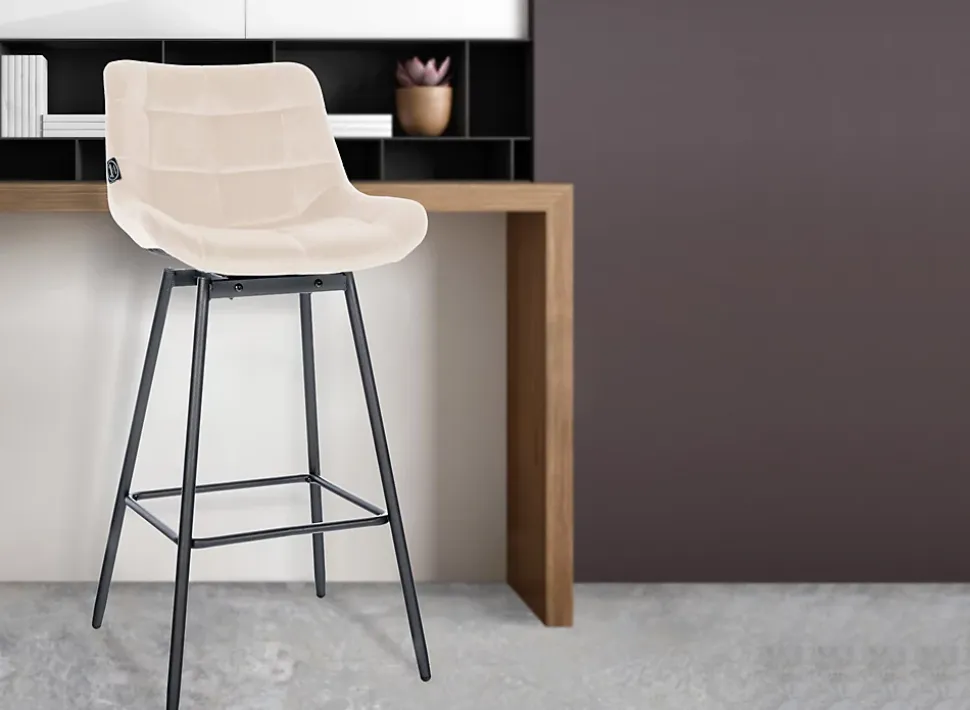 Tabouret de bar Weston pivotantAvec le tabouret de bar Weston pivotant, vous découvrez une nouvelle dimension de flexibilité. Ce siège de bar combine un design chic avec une technologie intelligente – le siège pivote jusqu’à 90 degrés vers la gauche et vers la droite et revient de lui-même à sa position de départ. Idéal pour une assise dynamique lors de réunions sociales ou dans l’environnement agité de la cuisine. Le revêtement en velours noble avec motif piqué, associé à un dossier rembourré, assure un confort maximal. Le piètement robuste à quatre pieds confère non seulement une base stable au tabouret de bar, mais il est complété par des protections de sol qui protègent votre sol des rayures. Que ce soit pour un petit déjeuner rapide ou une soirée de détente, ce tabouret de bar pivotant offre une fonctionnalité élégante et est un atout pour tout intérieur moderne.Composition des matériaux: 100% polyuréthane / 100% polyesterCa. Dimensions:Hauteur totale : 105 cmLargeur totale : 49 cmProfondeur totale : 56 cmAssise (LxP) : 49 x 40 cmHauteur d’assise : 77 cmHauteur du dossier : 29 cmLargeur du dossier : 49 cmMax. Capacité de charge : 135 kgPoids : 9 kgAssise:Revêtement avec coutures décoratives, velours ou similicuirPosition assise agréable grâce au dossierAssise confortablement rembourréeChâssis :Matériau : métal noirPiétement stable à quatre piedsStabilitéSpécificités :Un look moderne allié à un grand confortUne assise confortable même après plusieurs heuresUn revêtement facile d’entretienConseils d’entretien :Essuyer les salissures légères avec un chiffon en coton humideNe passer l’aspirateur sur les surfaces qu’avec un accessoire adaptéNe pas utiliser de produits ménagers
