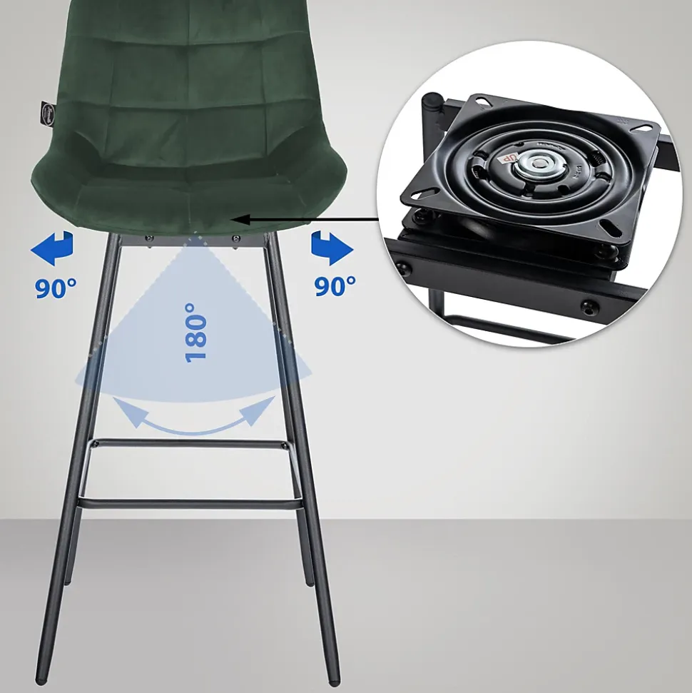 Tabouret de bar pivotant Weston pivotant à 90 degrés, réglage, assise rembourrée, structure métallique Vertfoncé/Velours