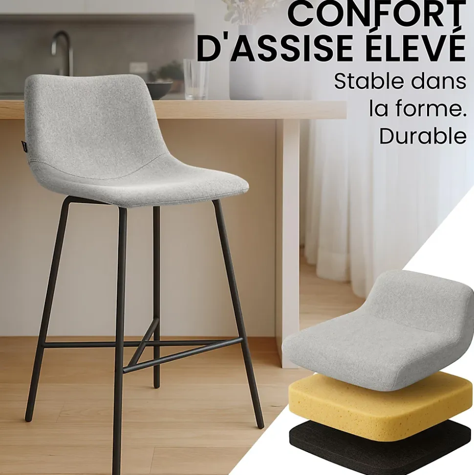 Tabouret de bar AltonaDécouvrez le tabouret de bar Altona – la combinaison parfaite de style, confort et fonctionnalité pour îlot de cuisine, comptoir ou bar maison. La coque de siège moulée et rembourrée avec dossier bas offre un soutien agréable et invite à des moments de détente au petit-déjeuner ou lors d’un apéritif en soirée. Le piètement en métal noir assure une stabilité et une assise sûre, tandis que le repose-pieds intégré soulage vos jambes et offre un confort supplémentaire.Avec ses lignes modernes et épurées et ses dimensions compactes, l’Altona s’intègre harmonieusement aux intérieurs scandinaves, minimalistes ou intemporels modernes – idéal pour les petits espaces. La surface facile à entretenir se nettoie sans effort et reste belle, même avec une utilisation quotidienne. Que ce soit dans la cuisine, la salle à manger ou au bar maison..Détails:Hauteur totale : 98 cmLargeur totale : 44 cmProfondeur totale : 49 cmHauteur de l’assise : 75 cmSurface de l’assise (L x P) : 44 x 37 cmHauteur du dossier : 23 cmHauteur du repose-pieds : 31 cmAssise :Caractéristiques de confort : coque de siège moulée et rembourrée avec dossier bas pour un soutien ergonomiqueRembourrage : Rembourrage doux pour un confort d’assise prolongéStructure :Matériau : MétalCouleur : NoirFonctionnalités : Repose-pieds intégré, structure stable, idéal pour îlot de cuisine, comptoir ou bar maison