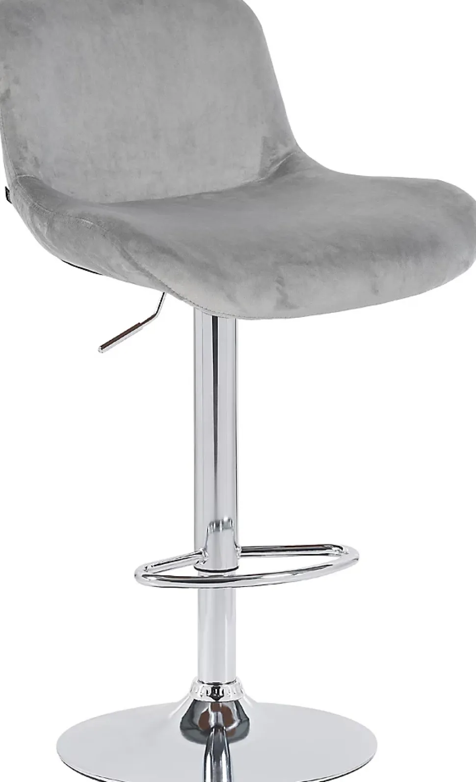 Tabouret de bar Solon en finition chroméeLe tabouret de bar Solon convainc par son design moderne et son grand confort d’assise. L’assise rembourrée est particulièrement confortable et le dossier soulage le bas du dos. Le repose-pieds apporte un confort supplémentaire. Le piètement métallique d’aspect chromé et le revêtement à la mode confèrent au tabouret une apparence élégante. L’assise est recouverte au d’un tissu résistant ou d’un velours chic. Le piètement métallique est réglable en hauteur et la fonction de rotation à 360 degrés assure une grande liberté de mouvement.Le piètement métallique stable offre une bonne stabilité et une capacité de charge jusqu’à 120 kg. L’anneau de protection du sol protège les sols fragiles.Détails:Largeur totale : 50 cmHauteur totale : 85 – 106 cmProfondeur totale : 52 cmHauteur d’assise : 64 – 85 cmSurface d’assise (l x p) : 50 x 39 cmHauteur du dossier : 21 cmMax. Capacité de charge : 120 kgPoids : 7 kgComposition du matériau : 100 % polyesterAssise:Revêtement : velours ou tissuAssise et dossier confortablement rembourrésAvec dossierPiétement:Matériau : Métal chroméRéglable en hauteur et pivotantAvec repose-pieds et anneau de protection pour le solConseils d’entretien:Essuyer les salissures légères avec un chiffon en coton humideNe passer l’aspirateur qu’avec un accessoire appropriéPour le nettoyage, nous recommandons un chiffon en coton humidifié à l’eau tiède