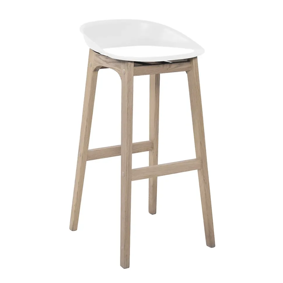 Tabouret en plastique blanc et pieds en bois Homesight Riva 75 cm, 2 pièces