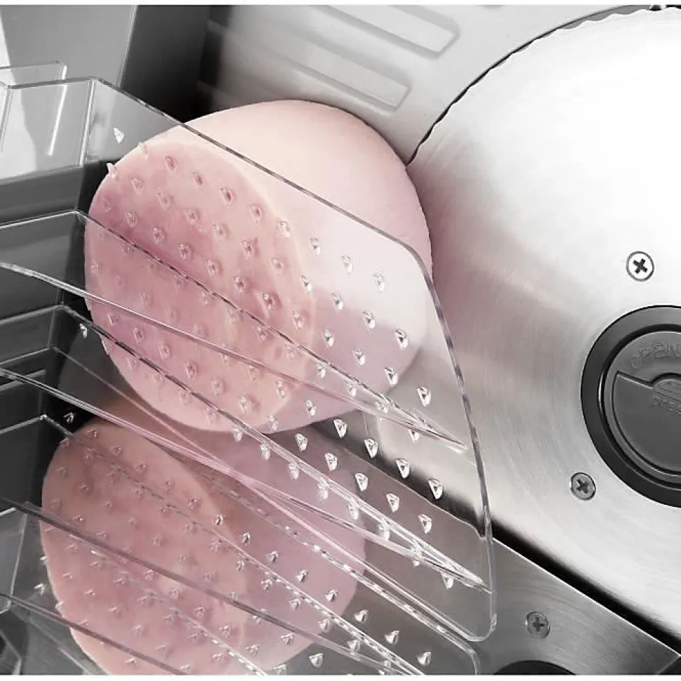 - Chariot alimentaire et poussoir amovibles avec broches de préhension, plus pieds antidérapants et protection des doigts pour une utilisation sûre.